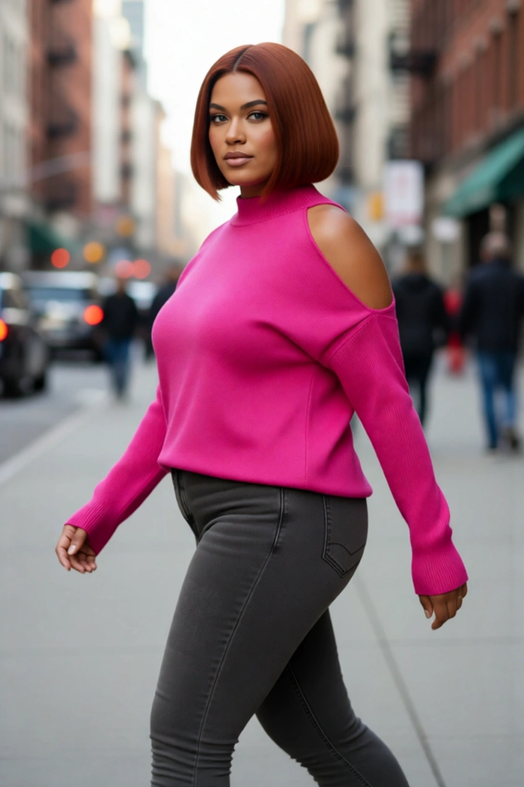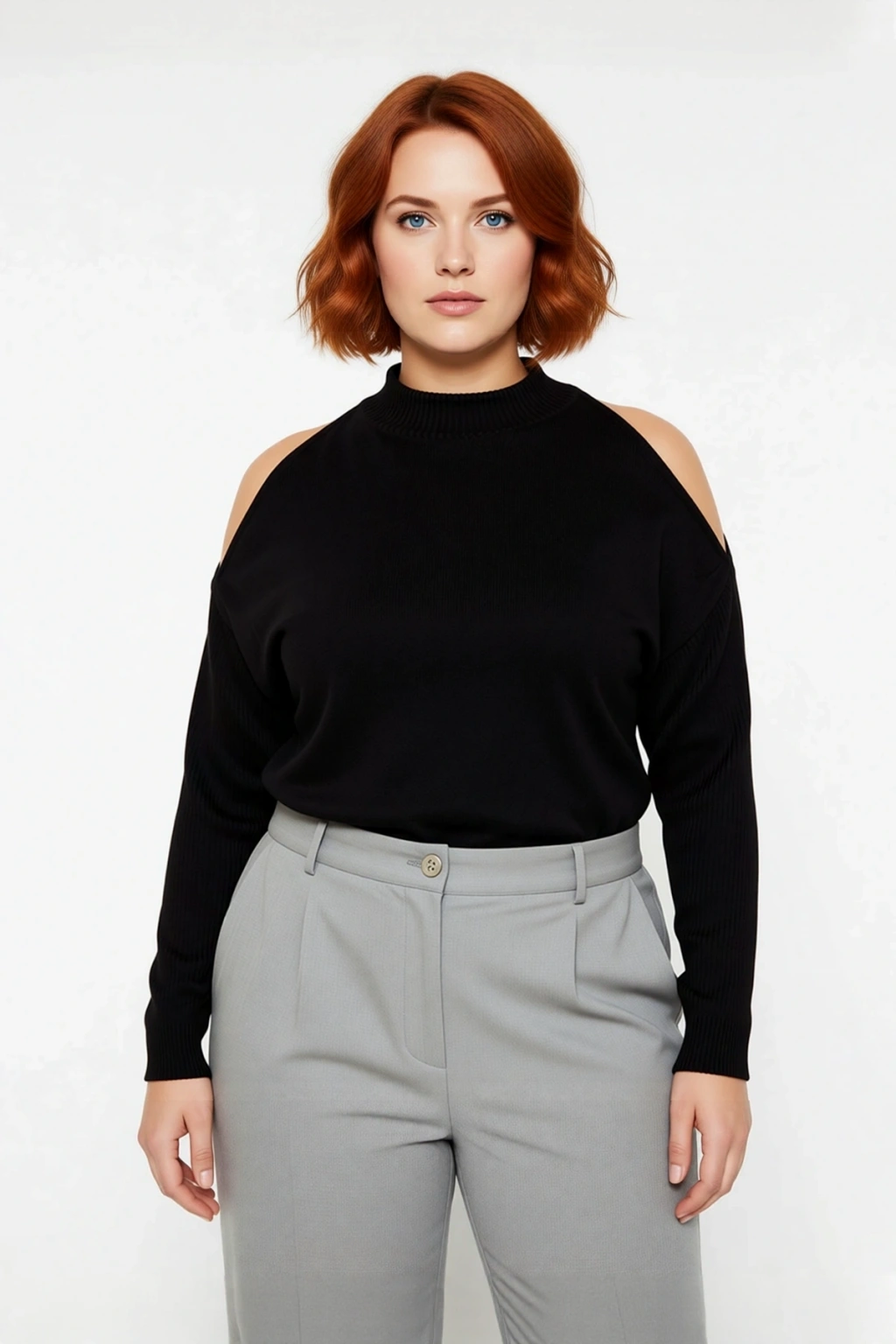 Dik yaka tasarımı, boynunuzu şık bir şekilde vurgulayarak soğuk havalara karşı ekstra koruma sağlar. Uzun kolları, düşük kol tipiyle birleşerek rahat ve modern bir görünüm sunar, hareket özgürlüğünüzü kısıtlamaz. Triko kumaşın ince yapısı, tek plaka dokuma özelliği sayesinde hafiflik ve nefes alabilirlik sunarken, yine de etkili bir yalıtım sağlar. Omzu açık detayı, kışlık bir parçaya beklenmedik ve çekici bir dokunuş ekleyerek stilinizi bir üst seviyeye taşır. Yüksek kaliteli akrilik materyal, ürünün kolayca bakılmasını ve T41 yıkama talimatlarına göre makinede yıkanabilmesini sağlar. Uzun ömürlü kullanımı garanti eden dayanıklı yapısıyla gardırobunuzun favorisi olacak.
