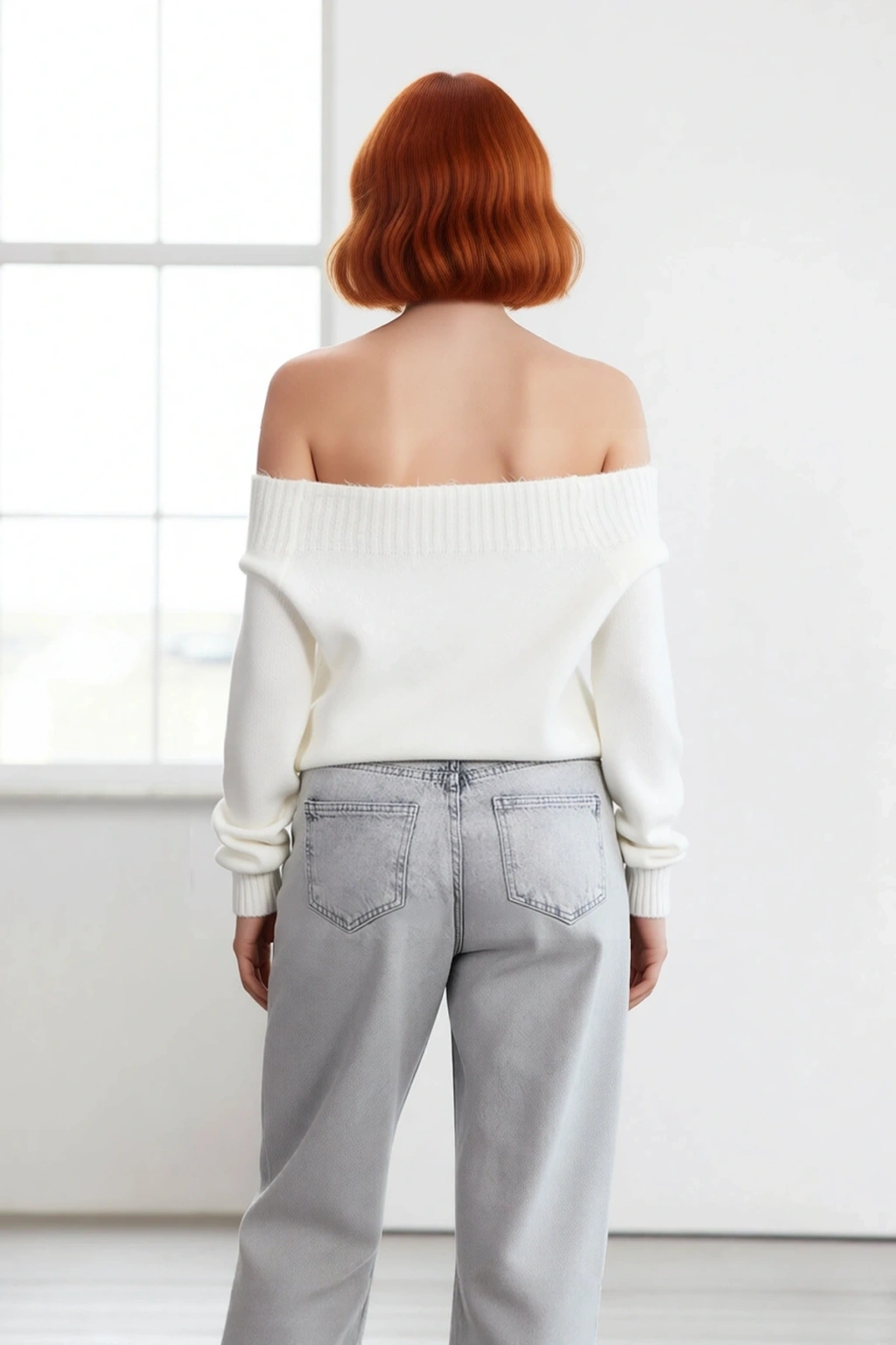 Ürün Özellikleri: Oversize kalıp, akrilik polyester materyal, düz desen, kayık yaka, standart kol, triko kumaş, ekru renk.