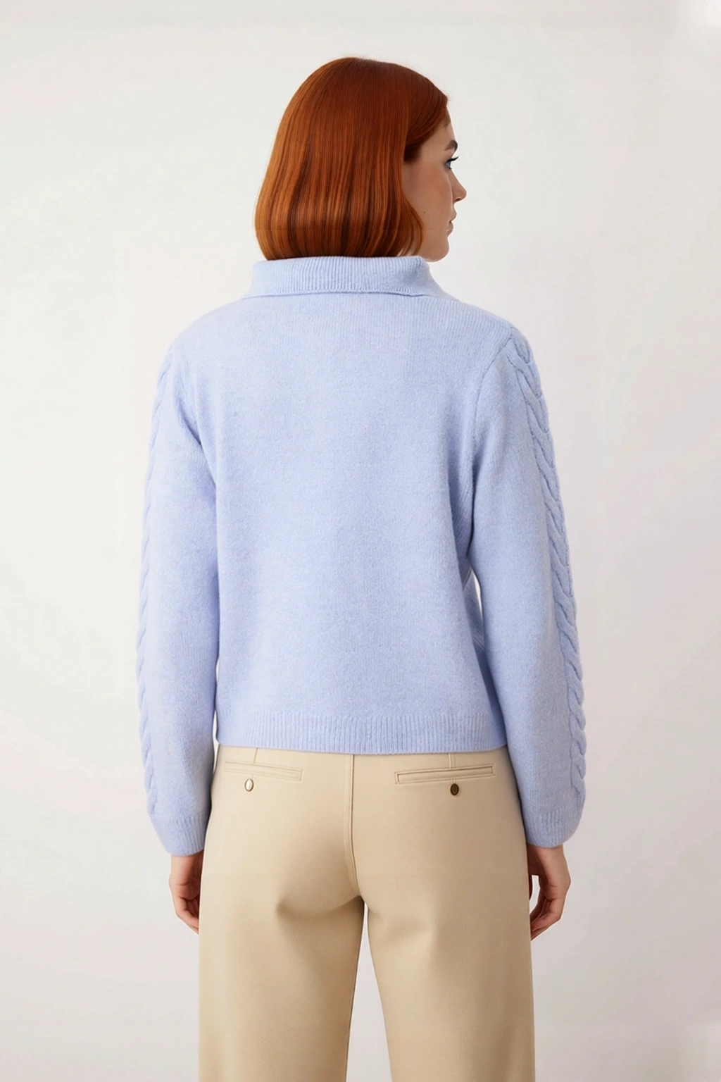 Polo yaka tasarımı, kazağa hem dinamik hem de sofistike bir görünüm kazandırır. Bu yaka tipi, hem ofis ortamında hem de hafta sonu gezmelerinde rahatlıkla tercih edilebilir. Standart kol kesimi, hareket özgürlüğünüzü garanti ederken, uzun kol boyu soğuklara karşı etkili bir koruma sunar. Orta kalınlıktaki triko kumaşı, vücut ısınızı dengede tutarak gün boyu konforlu bir kullanım sağlar. Tek plaka dokuma tekniği, ürünün formunu uzun süre korumasına yardımcı olur ve dayanıklılığını artırır. Kolay bakım özellikleri sayesinde makinede yıkanabilir olması, pratikliği seven Kadınlar için büyük avantajdır.