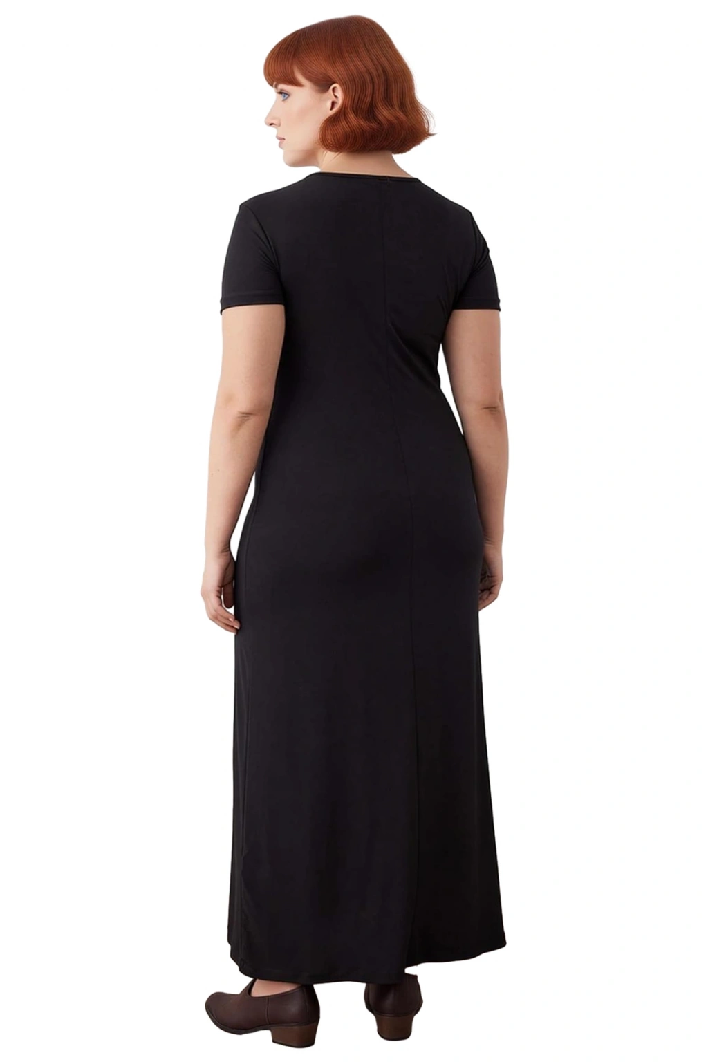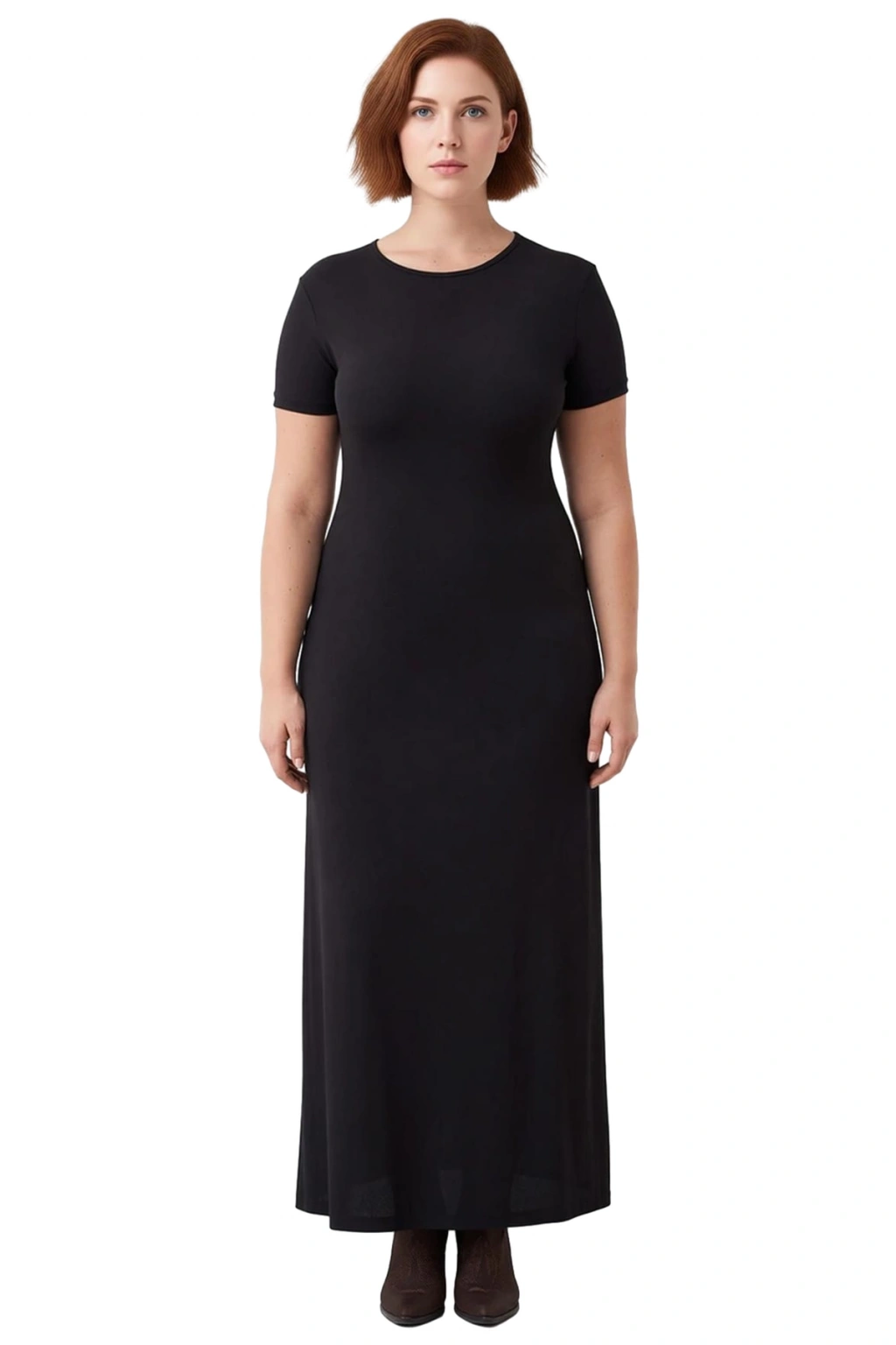 Bu Kadın esnek siyah örme maxi elbise, vücuda oturan tasarımıyla modern ve çekici bir stil sunar. %96 polyester ve %4 elastan materyal bileşimi, elbiseye üstün bir esneklik kazandırarak gün boyu hareket özgürlüğü ve konfor sağlar. Düz deseni, sade ve şık bir görünüm yaratırken, zamansız siyah rengi ile gardırobunuzdaki diğer parçalarla kolayca uyum sağlar. Bisiklet yaka detayı klasik bir hava katarken, kısa kol boyu ilkbahar ve sonbahar geçiş dönemleri için idealdir. Bu elbise, her anınızda şıklığı ve rahatlığı bir arada sunar.