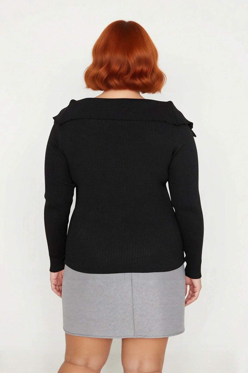 Ürün Özellikleri: Fitted kalıp, polyester materyal, düz desen, kayık yaka, standart kol, triko kumaş, siyah renk.