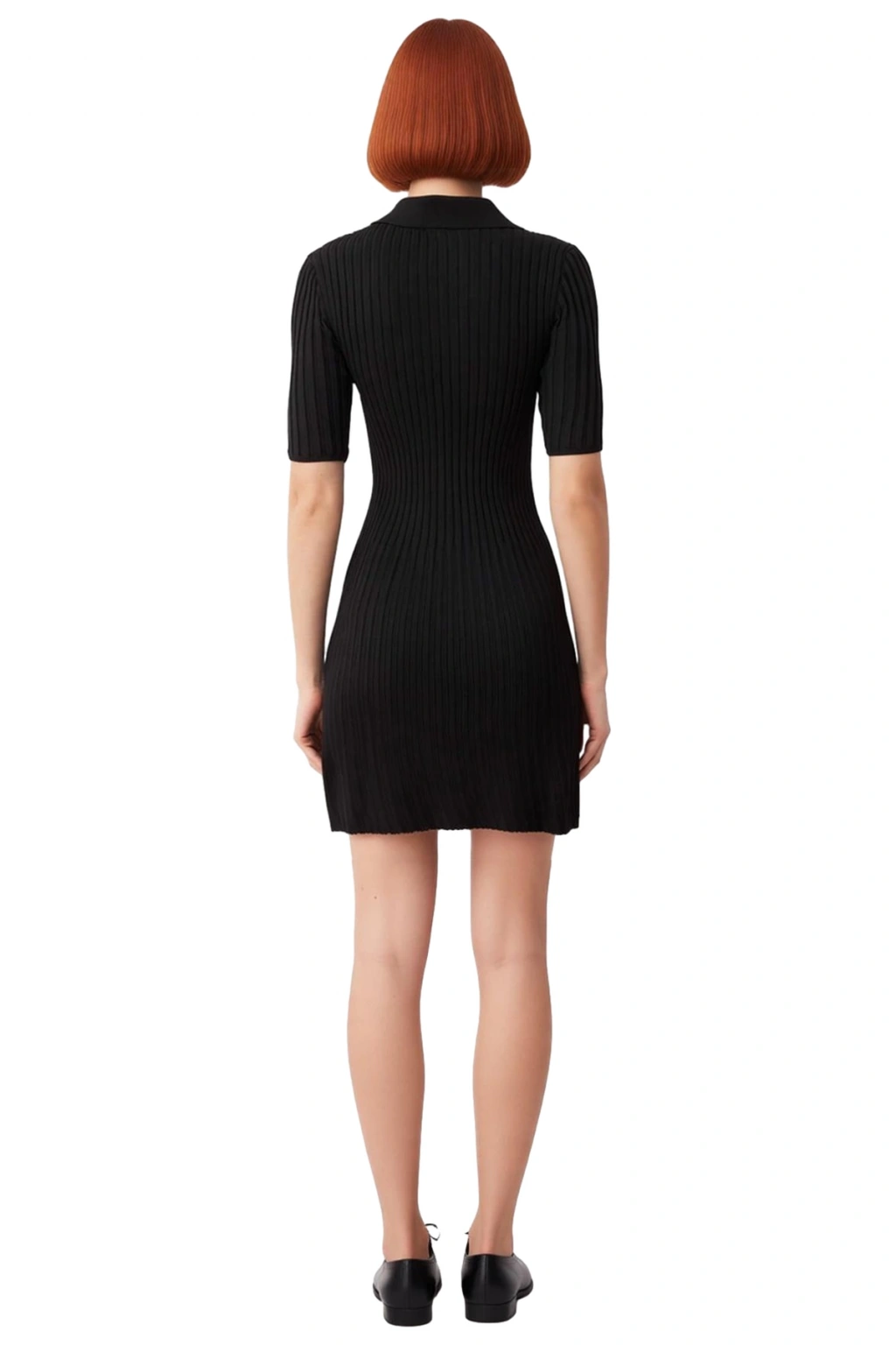 Ürün Özellikleri: A-line kalıp, polyester materyal, düz desen, polo yaka, kısa kol, triko kumaş, siyah renk.