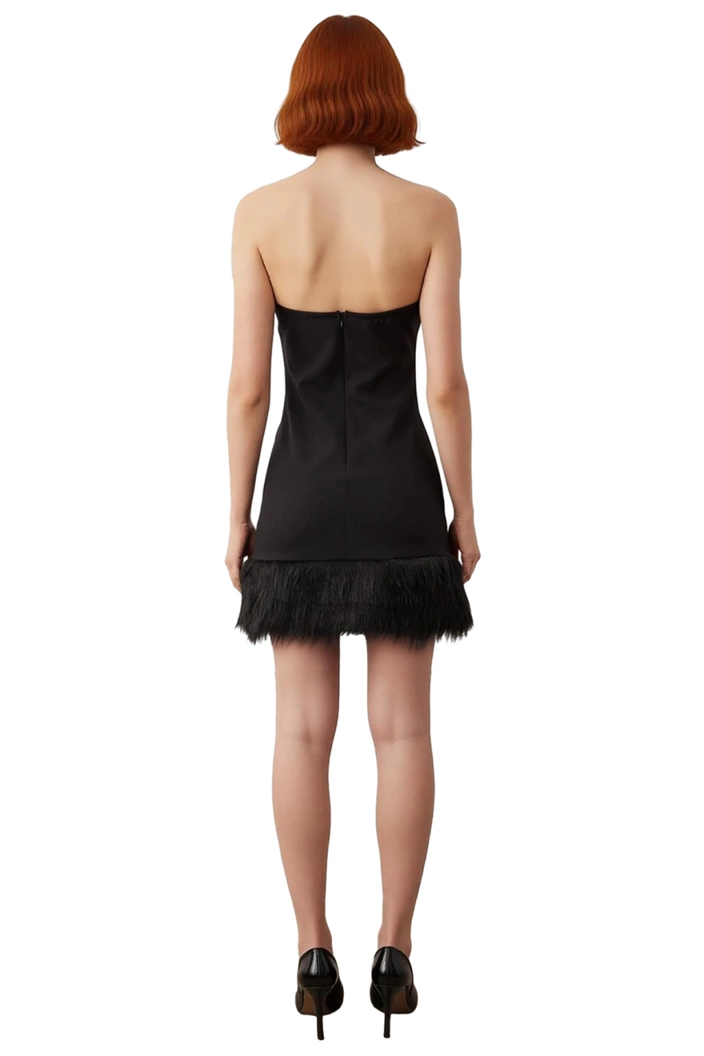 Bu kadın siyah mini elbise, bodycon kalıbı ile vücudu saran modern bir kesime sahiptir. %88 polyester ve %12 elastan materyal bileşimi sayesinde esneklik sunarken, dokuma kumaşın kalitesiyle gün boyu rahatlık sağlar. Düz ve şık siyah rengi, zarafetin ve sofistikasyonun temsilcisidir. Etek ucundaki otriş detayı ise elbiseye eşsiz bir hareketlilik ve lüks bir dokunuş katarak, girdiğiniz her ortamda fark yaratmanızı garantiler. Bu parça, özel anlarda ışıldamak isteyen kadınlar için tasarlandı.