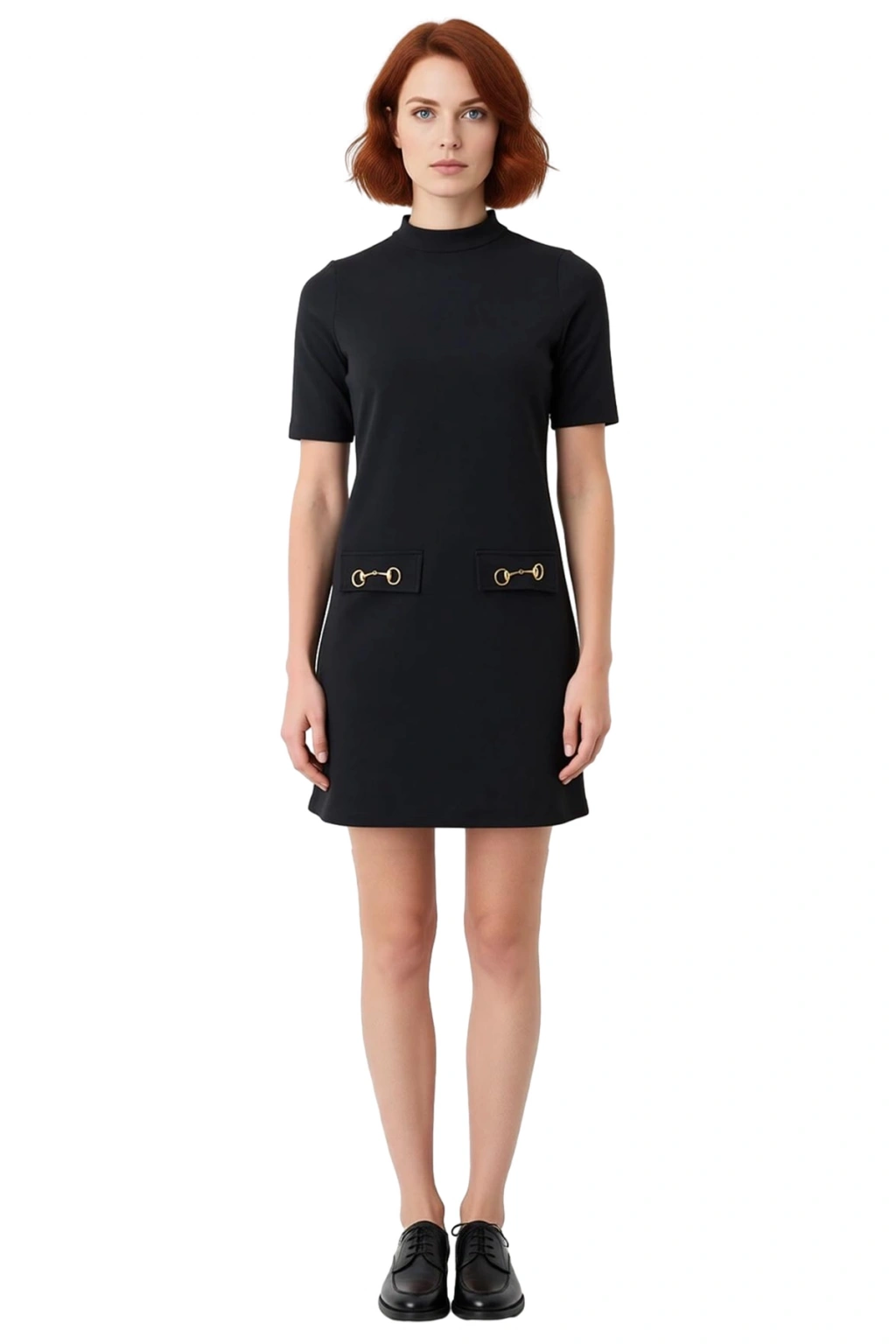 Bu şık siyah mini elbise, A-line kesimiyle modern bir siluet sunarken, dik yaka ve truvakar kol detaylarıyla klasik bir şıklık yakalar. Özellikle kış ayları için ideal olan örme kumaşı, sıcak tutma özelliğiyle konforlu bir kullanım vadeder. Elbisenin ön kısmındaki dikkat çekici düğmeler ve gold aksesuarlı cepler, tasarıma sofistike bir dokunuş katarak sıradanlıktan uzaklaştırır. 72% Polyester, 25% Viskoz ve 3% Elastan içeren materyal bileşeni, hem dayanıklılığı hem de esnekliği garanti eder, böylece elbise gün boyu rahat bir kullanım sunar. İnterlok dokuma tipi, kumaşın pürüzsüz ve kaliteli görünmesini sağlar.