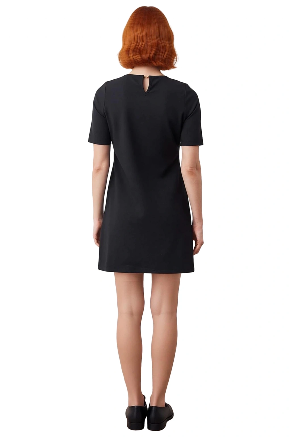 Casual ve günlük kullanım için tasarlanan bu elbise, smart persona anlayışına uygun olarak hem rahat hem de şık bir görünüm sağlar. Truvakar kol kesimi, hareket özgürlüğünü kısıtlamadan şıklığı korur. Astarsız olması, elbisenin hafifliğini ve nefes alabilirliğini artırarak özellikle iç mekanlarda rahatlık sunar. Kısa mini boyu, genç ve enerjik bir stil arayanlar için idealdir. Elbisenin siyah rengi, onu her türlü aksesuarla ve farklı kıyafetlerle kolayca kombinlenebilen çok yönlü bir parça haline getirir. Bu elbise, gardırobunuzun temel parçalarından biri olmaya adaydır.