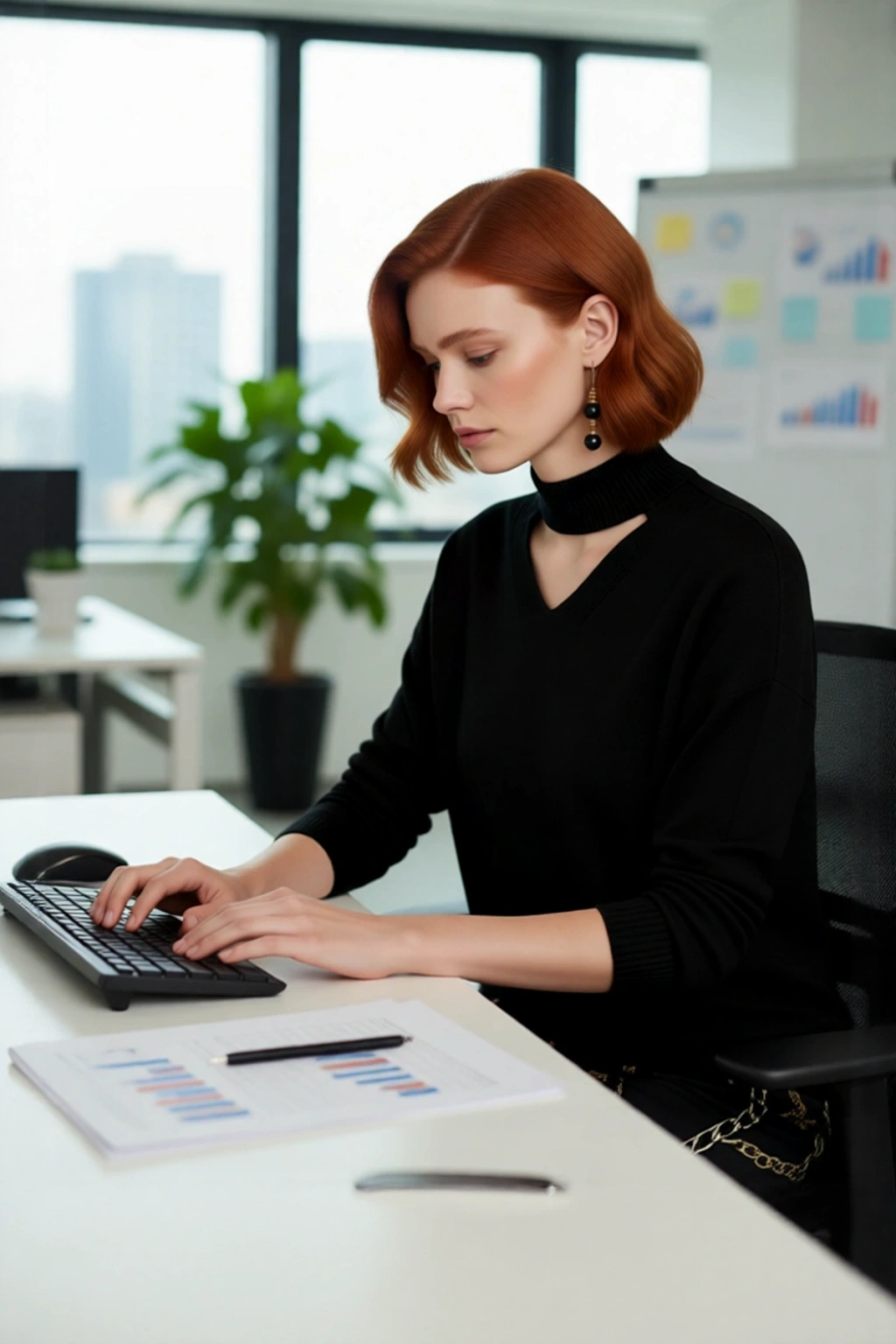 Ürün Özellikleri: Regular kalıp, akrilik materyal, düz desen, choker yaka, uzun kol, triko kumaş, siyah renk, baskısız tasarım.