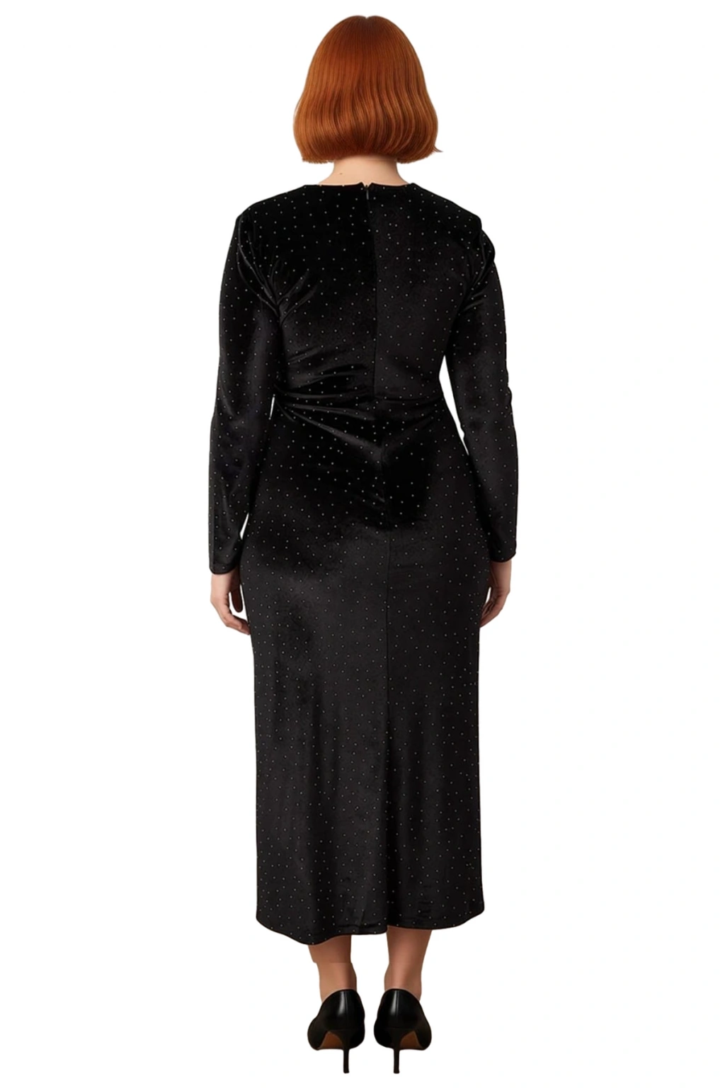 Her vücut tipine kolayca uyum sağlayan A-line kalıp ve büyük beden yapısıyla bu elbise, gardırobunuzun vazgeçilmezleri arasına girecek. Şık topuklu ayakkabılar, minimal mücevherler ve zarif bir el çantası ile kombinleyerek sofistike bir görünüm yakalayabilirsiniz. Kış ve sonbahar mevsimlerinde düzenlenen özel etkinlikler, gala yemekleri, nişan ve düğün gibi kutlamalar için mükemmel bir seçimdir. Bu elbise ile her an büyüleyici ve konforlu bir tarz yaratın.
