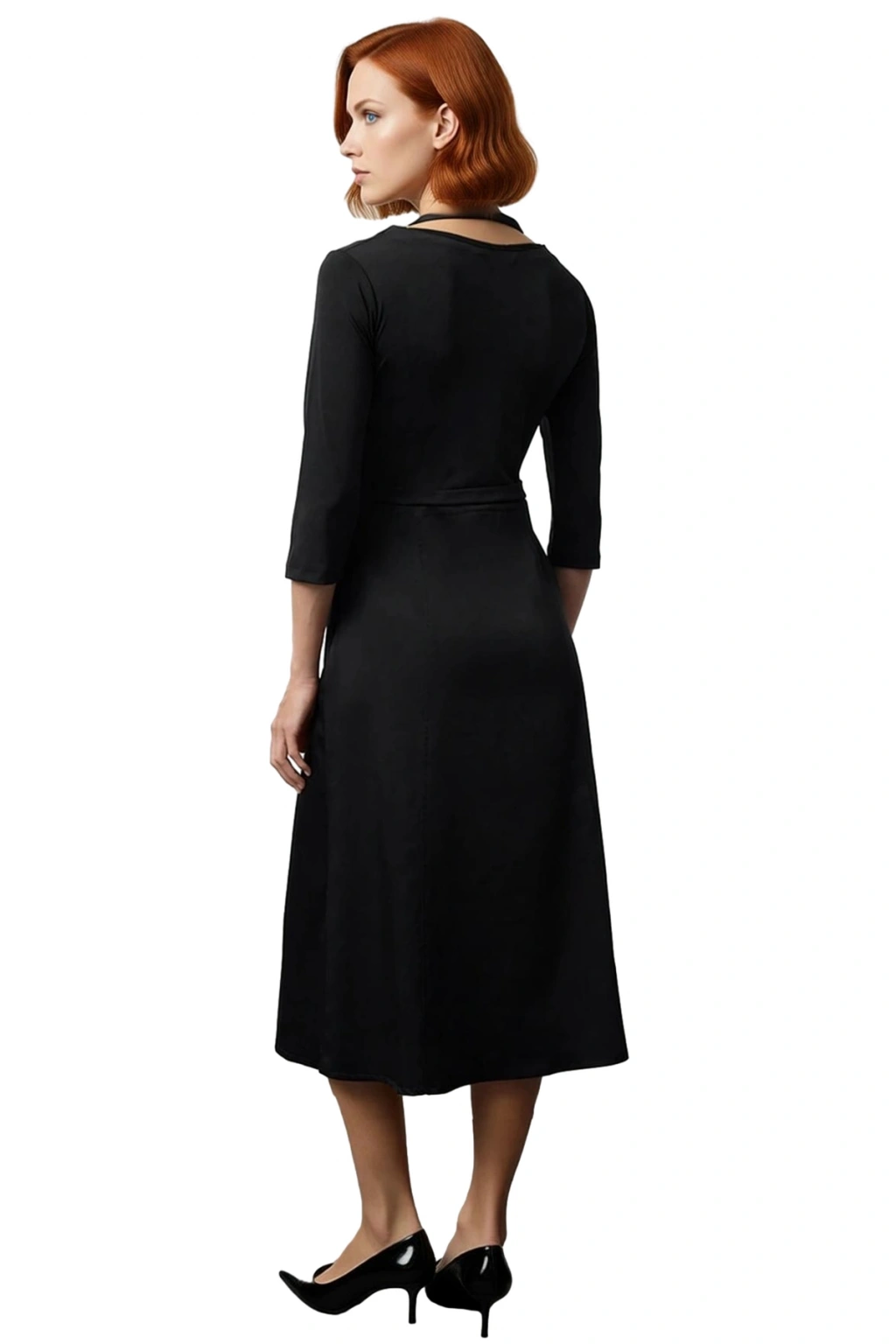 Ürün Özellikleri: Skater kalıp, %100 polyester materyal, düz desen, kayık yaka, 3/4 kol, standart kol, dokuma kumaş, siyah renk, cepli tasarım, midi boy, kemersiz.