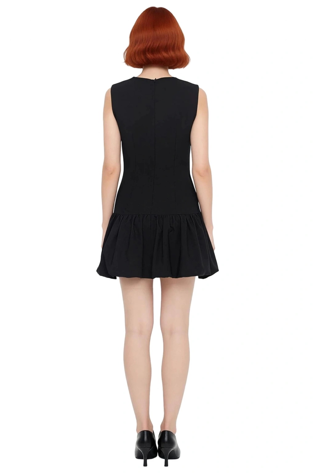 Ürün Özellikleri: Skater kalıp, polyester-elastan materyal, düz desen, bisiklet yaka, kolsuz, dokuma kumaş, siyah renk.