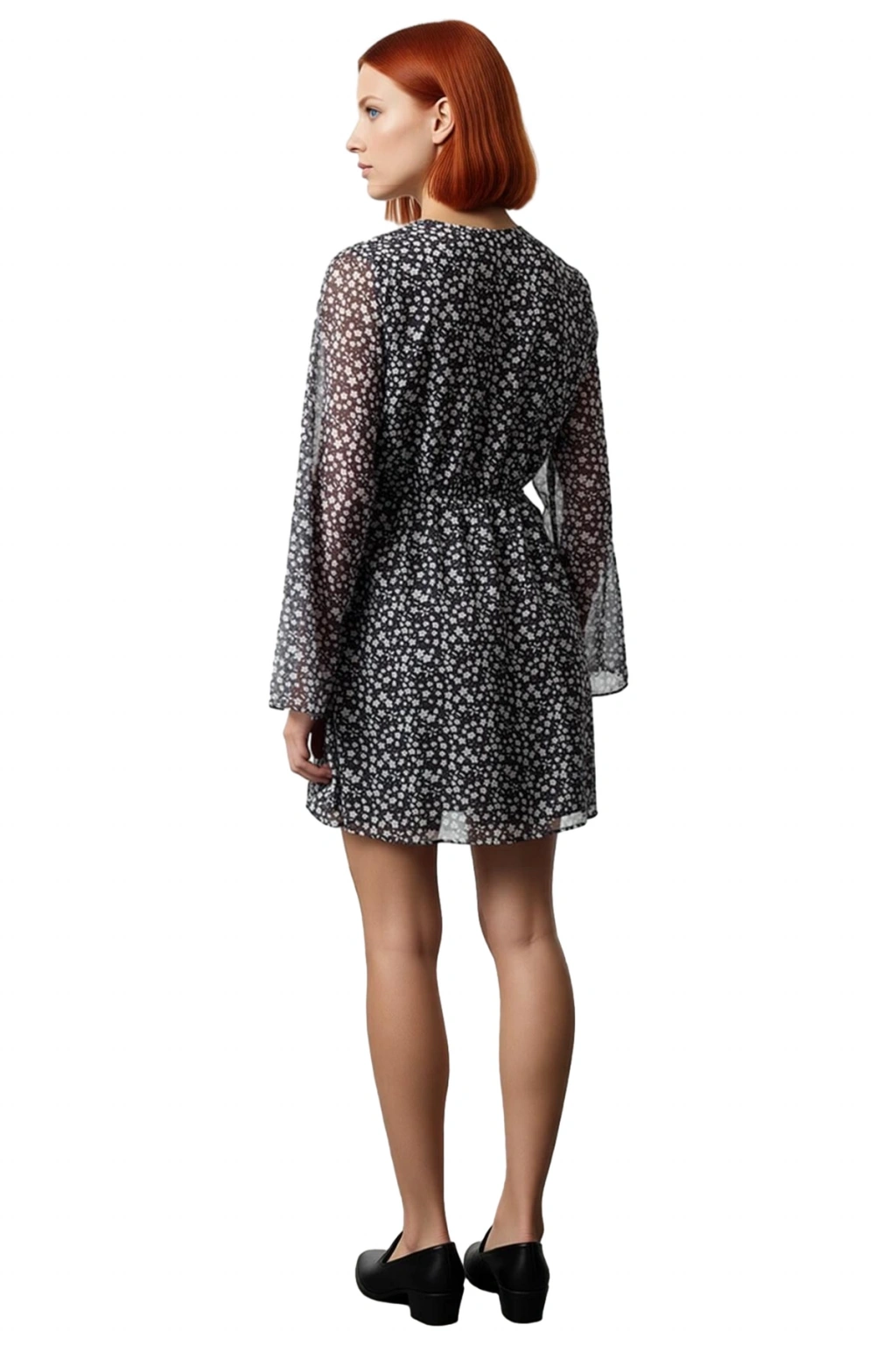Elbisenin V yaka tasarımı, boynunuzu zarifçe ortaya çıkararak şıklığınıza sofistike bir dokunuş katar. Uzun ve hafif şeffaf standart kolları, hareket özgürlüğü sağlarken aynı zamanda romantik bir hava yaratır. Şifon dokuma kumaşın nefes alabilen yapısı, sıcak havalarda bile serin ve rahat kalmanızı sağlar. Mini boyu, bacaklarınızı ön plana çıkararak dinamik ve genç bir görünüm verir. Kemersiz tasarımı sayesinde dilediğiniz kemerle kombinleme özgürlüğü sunar. Bakımı kolay polyester kumaşı sayesinde çamaşır makinesinde rahatlıkla yıkanabilir.