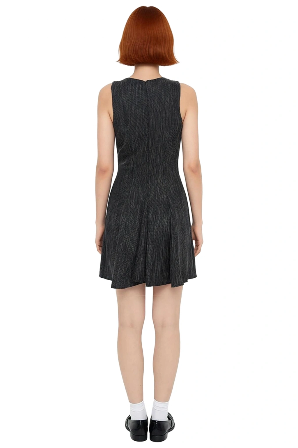 Bu zarif kadın elbisesi, skater kesimiyle genç ve dinamik bir duruş sergilerken, her adımda özgürlük hissi verir. %100 polyester materyalden üretilen bu elbise, hafif yapısı sayesinde gün boyu konfor sunar ve hareketlerinizi kısıtlamaz. Dokuma tüvit kumaşı, göz alıcı siyah rengiyle sade ama şık bir görünüm sunar. Düz deseni modern ve minimalist bir stilin anahtarıdır. Kolsuz tasarımı ve mini boyu ile özellikle sıcak havalarda gardırobunuzun kurtarıcı parçası olacak.