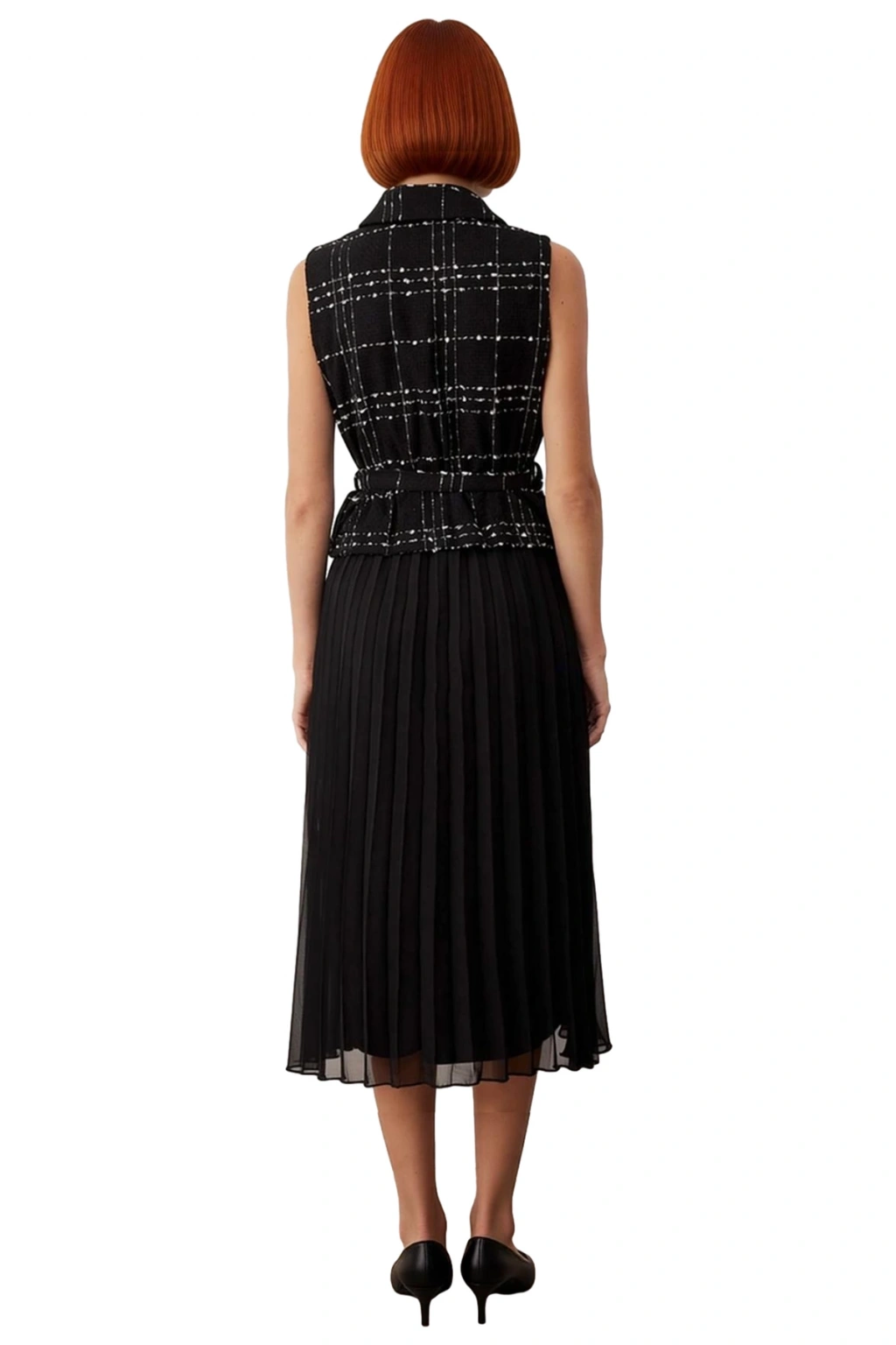 Bu Kadın Skater Midi Elbise, zarif ve modern bir görünüm sunarak gardırobunuzun vazgeçilmez parçası olmaya aday. Skater kalıbı ile vücuda nazikçe otururken belden itibaren genişleyerek hareketli ve feminen bir siluet oluşturur. Yüksek kaliteli %100 polyester materyali sayesinde hem dayanıklılık hem de konfor vadeden bu elbise, tüvit dokuma üst kısmı ile sofistike bir dokunuş katar. Düz deseni ile sade şıklığı ön plana çıkarırken, kemer detayı beli vurgulayarak kum saati görünümünü destekler. Siyah rengi, gündüzden geceye her ortama uyum sağlar.
