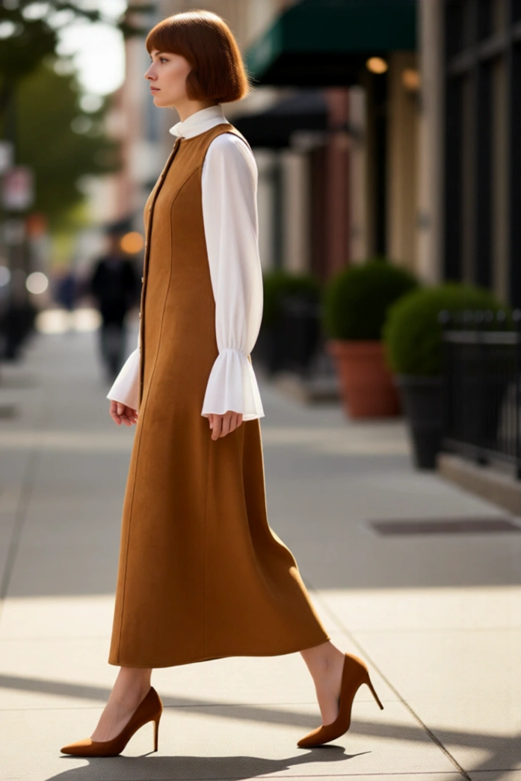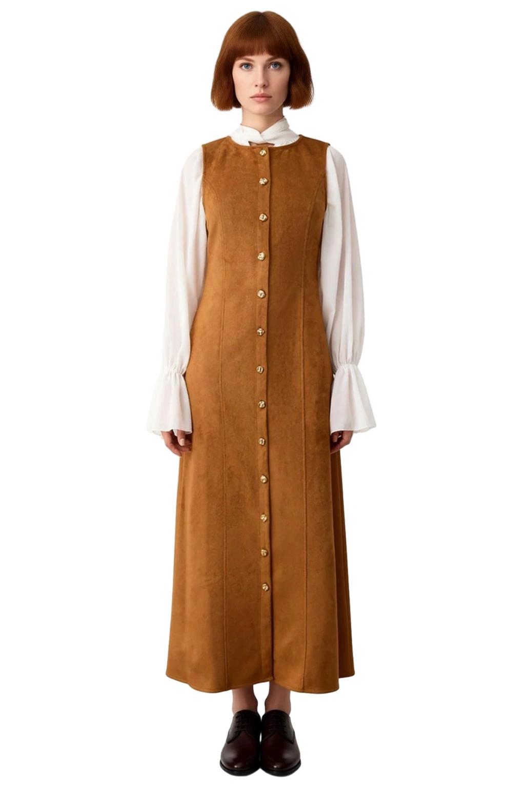 Bu zarif Kadın Süet Dokuma Elbise, iş ve özel günlerinizde şıklığınızı garantiliyor. Shift kalıbı sayesinde vücuda rahatça oturarak modern ve sofistike bir siluet sunar. Yüksek kaliteli süet dokuma kumaşı, kış aylarının soğuk günlerinde sıcak tutarken aynı zamanda yumuşak ve lüks bir dokunuş hissi verir. Düz deseni ile klasik zarafeti ön plana çıkarırken, göz alıcı kahverengi rengi her kombinle kolayca uyum sağlar. Tamamen düğmeli detayı ve maxi boyu ile hem şık hem de pratik bir kullanım vadeder.