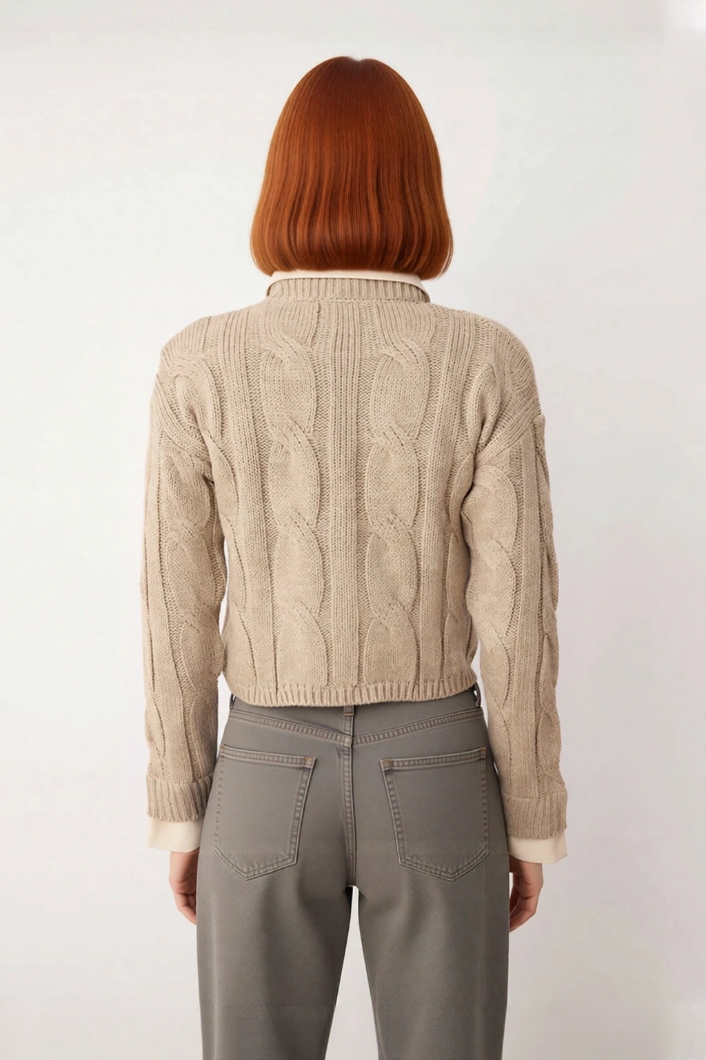 Kazağın bisiklet yaka tasarımı, gömlek yaka detaylı bir iç giyimle mükemmel bir uyum sağlayarak şık bir layering oluşturur. Düşük kol kesimi, rahat bir duruş ve modern bir görünüm sağlarken, uzun kol boyu soğuk havalara karşı etkili bir koruma sunar. Orta kalınlıktaki triko kumaşı, nefes alabilir yapısıyla gün boyu konfor sağlarken, dayanıklı yapısı uzun ömürlü kullanım imkanı verir. Basic silueti, farklı tarzlara kolayca adapte olmasını sağlarken, saç örgü deseniyle görsel zenginlik sunar. Bakım kolaylığı sayesinde pratik bir kullanım sunar.