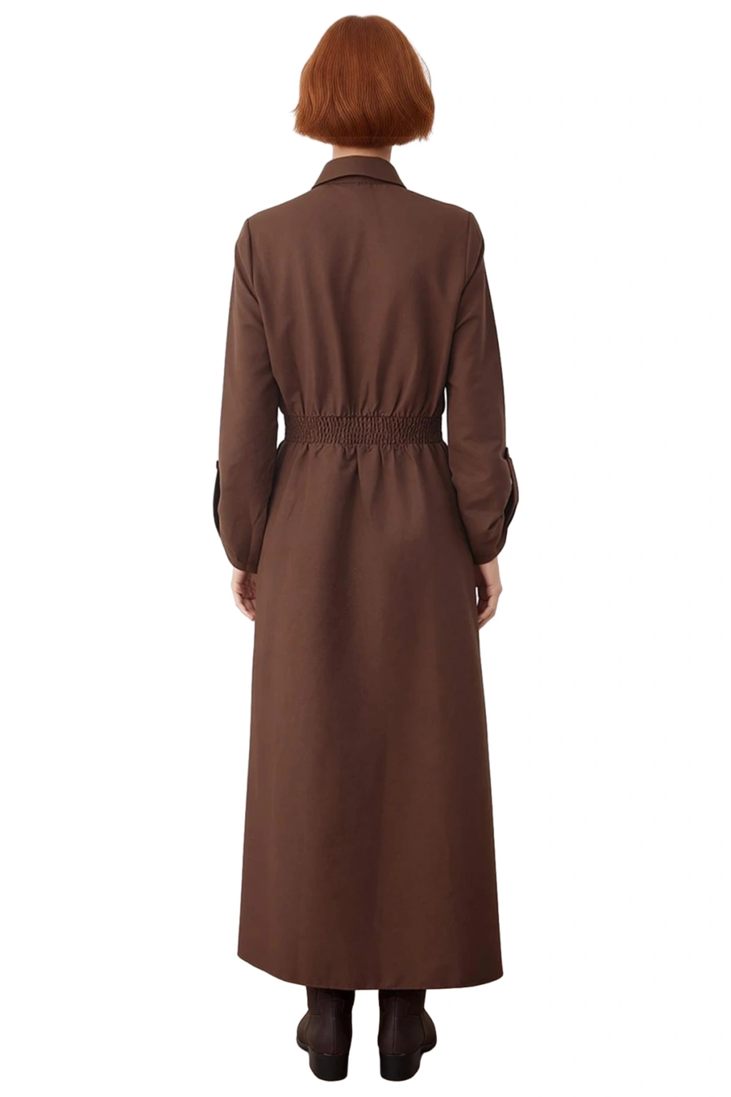 Gömlek yaka detayı, elbiseye klasik bir dokunuş katarken, standart uzun kol yapısı sayesinde soğuk havalarda bile sıcak kalmanızı sağlar. Astarsız olmasına rağmen gabardin kumaşın tok yapısı, iç göstermez ve dayanıklı bir kullanım sunar. Dokuma kumaşın kalitesi, elbiseyi uzun ömürlü kılar ve kolay bakımı sayesinde günlük hayatın yoğun temposunda pratiklik sağlar. T10 yıkama talimatı ile makinede rahatlıkla yıkanabilir, bu da kullanımı daha da kolaylaştırır.