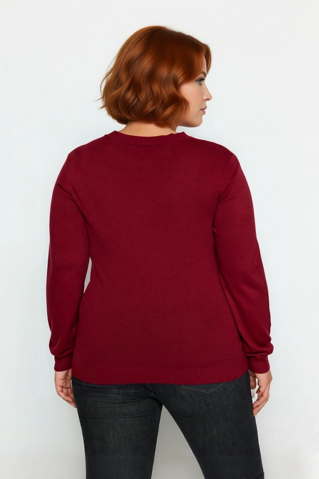Ürün Özellikleri: Regular kalıp, akrilik materyal, düz desen, V yaka, standart kol, triko kumaş, bordo renk.
