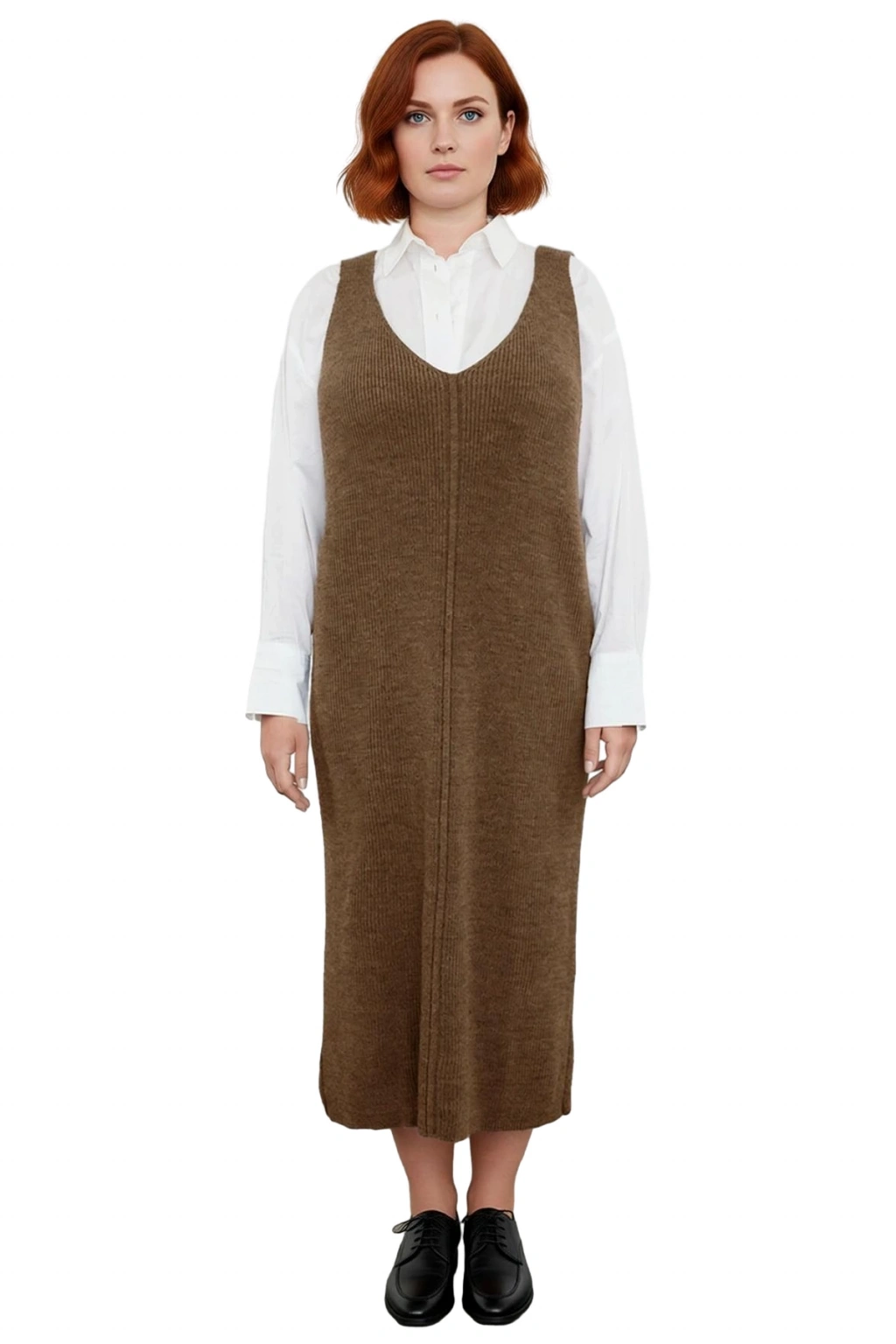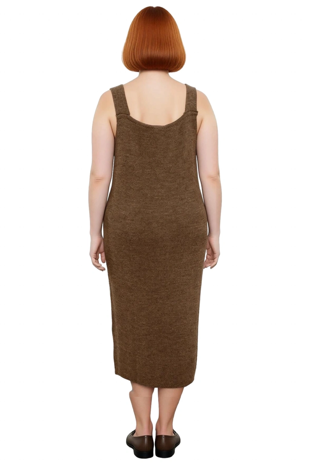 Elbisenin zarif V yaka detayı, boyun hattını vurgulayarak şık ve feminen bir görünüm kazandırır. Kolsuz jile tasarımı, içine giyilecek farklı uzun kollu bluzlar veya gömleklerle her mevsime adapte olabilen çok yönlü bir kullanım sunar. Fitilli triko kumaş dokusu, ürüne modern bir dokunuş katarken, esnek yapısı sayesinde gün boyu konforlu bir giyim deneyimi sağlar. Akrilik materyalin yüksek kalitesi, elbiseyi dayanıklı kılar ve uzun süreli kullanımlarda bile ilk günkü formunu korumasını garanti eder. Ayrıca, pratikliğiyle öne çıkan makinede yıkanabilir özelliği, günlük hayatınızı kolaylaştırır.
