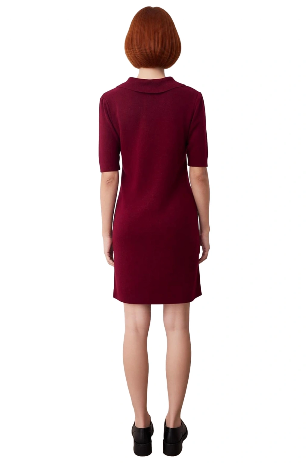 Ürün Özellikleri: Shift kalıp, akrilik materyal, düz renk desen, polo yaka, kısa kol, triko kumaş, bordo renk.