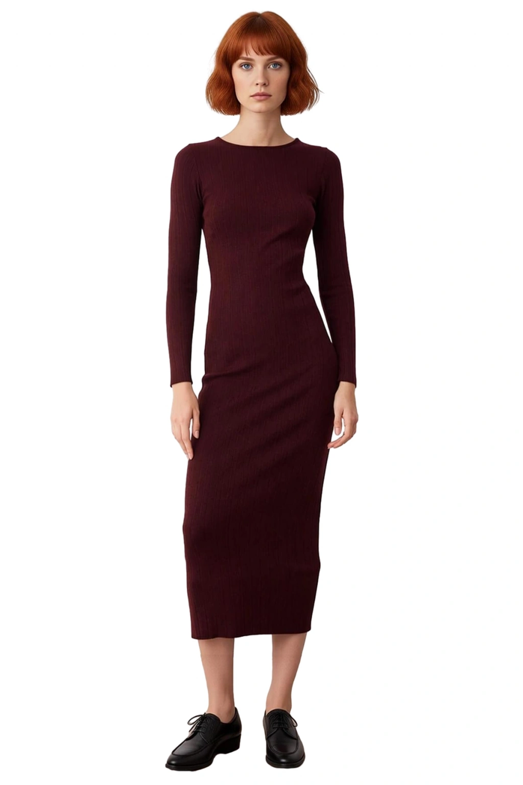 Ürün Özellikleri: Shift kalıp, özel iplik karışımı triko materyal, düz desen, kayık yaka, standart uzun kol, triko kumaş, bordo renk, astarsız tasarım, maxi boy.
