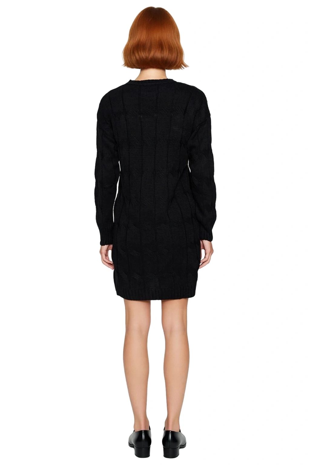 Bisiklet yaka tasarımı klasik ve sade bir çizgi sunarken, düşük kol ve uzun kol boyu elbiseye modern bir hava katar ve kullanım kolaylığı sağlar. Triko kumaş tipi, esnek ve dökümlü yapısıyla vücuda hoş bir şekilde oturur, astarsız oluşu hafiflik hissi verirken tek plaka dokuma tipi kaliteyi yansıtır. Bakımı oldukça pratik olan bu elbise, makinede yıkanabilir özelliği sayesinde zamandan tasarruf etmenizi sağlar. Kısa/mini boyu, bacaklarınızı vurgulayarak daha dinamik ve genç bir siluet oluşturur.