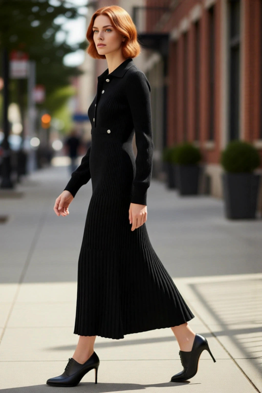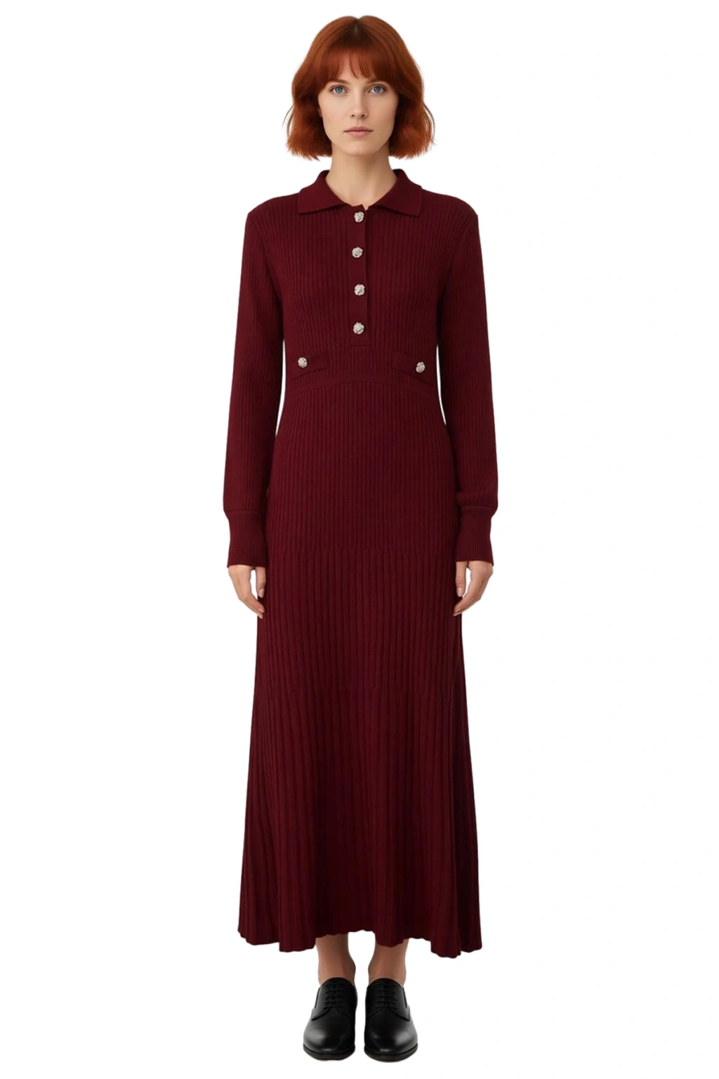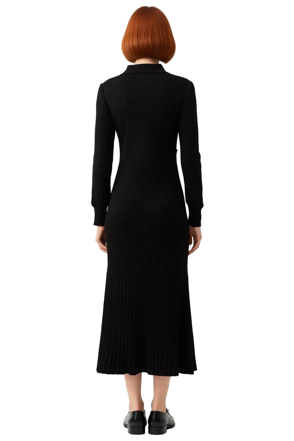 Polo yaka tasarımı, elbiseye çağdaş bir hava katarken, standart uzun kolları kışlık kullanıma uygun yapısıyla öne çıkar. Ribana/kaşkorse dokuma tipi, esnekliği sayesinde hareket kabiliyetinizi kısıtlamaz ve vücuda nazikçe oturur. Astarsız yapısı sayesinde hafif bir kullanım sunarken, akriliğin ısı tutma özelliği ile sıcak kalmanızı garantiler. Uzun boyu ile modern bir duruş sergileyen bu elbise, dayanıklı yapısıyla uzun yıllar gardırobunuzda yer alacak. Kolay ütülenebilir ve makinede yıkanabilir olması, pratikliğiyle de dikkat çeker.