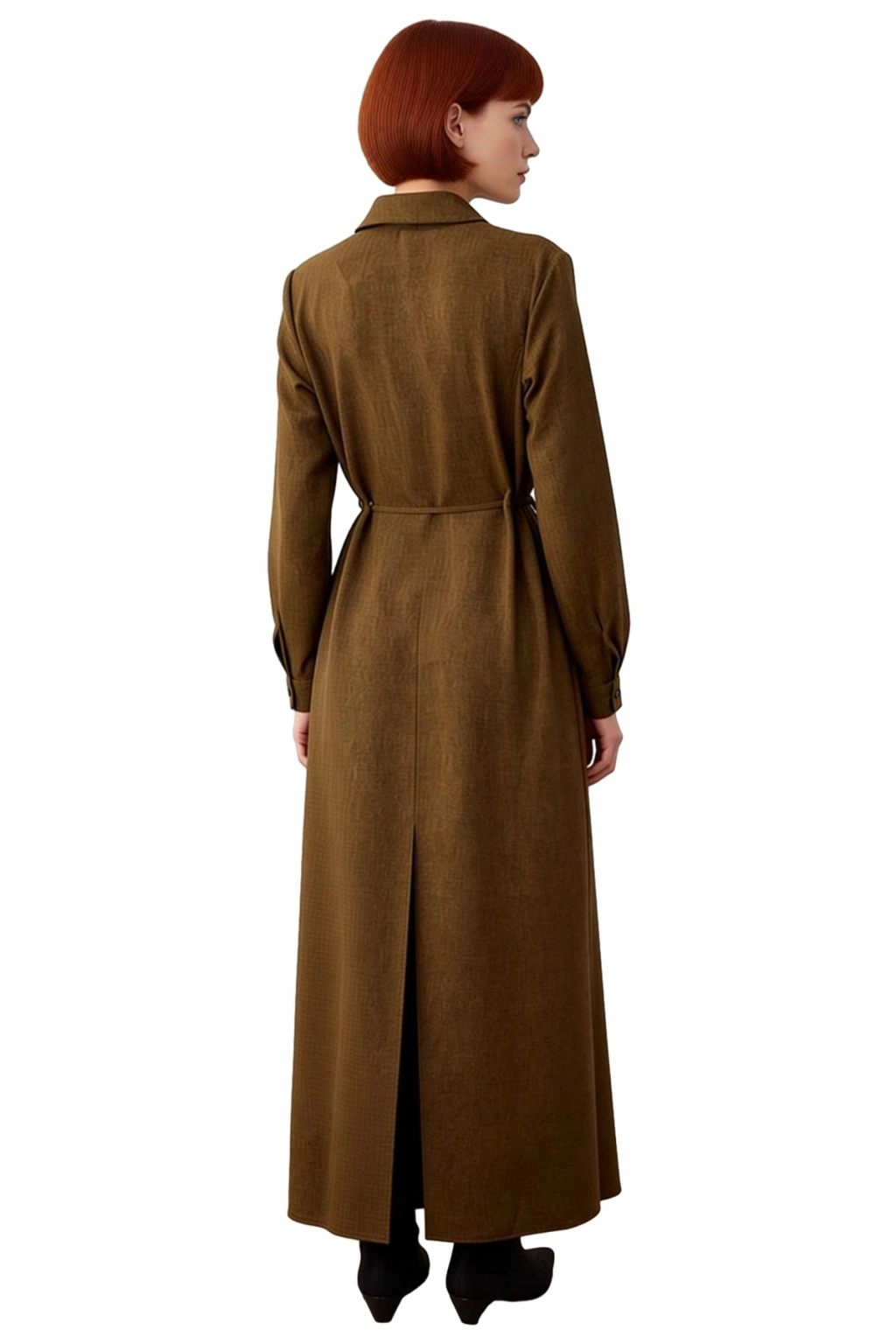 Gömlek yaka tasarımı, klasik bir zarafet sunarken, standart uzun kolları mevsim geçişlerinde ideal bir koruma ve şıklık sağlar. Astarsız oluşu, elbiseyi daha hafif ve ferah kılarak yaz sonu ve kış başı gibi geçiş dönemleri için mükemmel hale getirir. Dokuma kumaşın kalitesi, ürünün formunu korumasına yardımcı olurken, polyesterin kırışıklık direnci sayesinde kolay bakım imkanı sunar. Cool & Comfort personasına hitap eden bu elbise, zahmetsiz şıklığın anahtarını sunarak kendinizi her an iyi hissetmenizi garantiler.