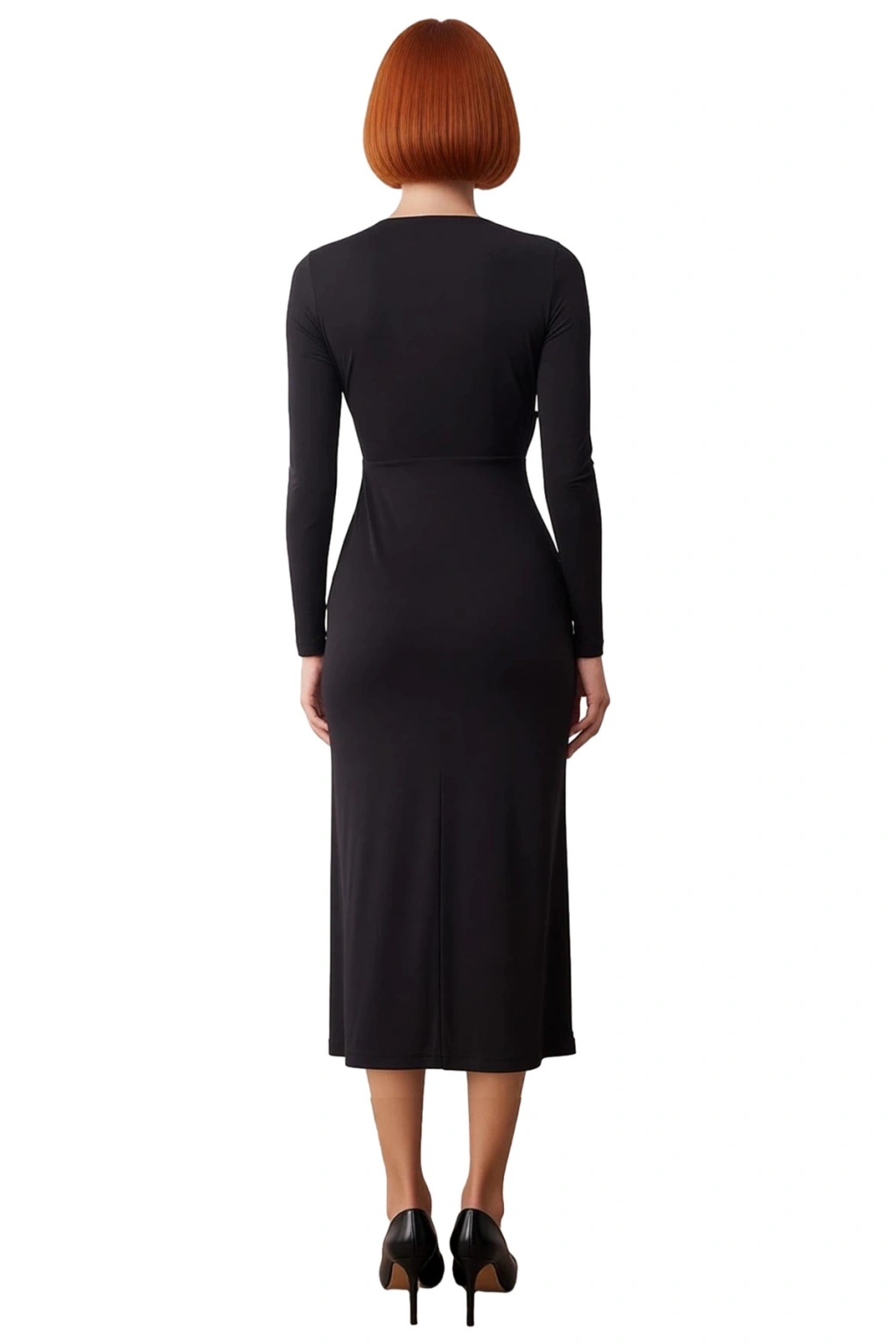 Ürün Özellikleri: Shift kalıp, %96 polyester %4 elastan materyal, düz desen, V yaka, standart kol, örme kumaş, siyah renk, agrafe detay.