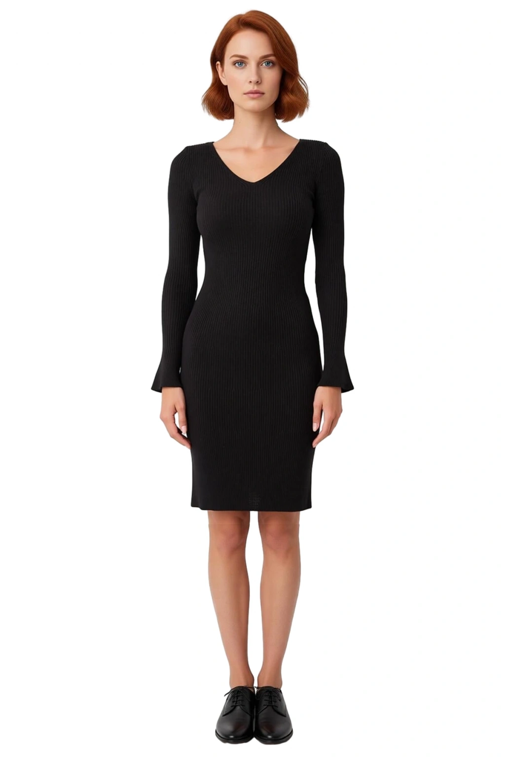 Çarpıcı V yaka tasarımı, feminen bir dokunuş katarken, uzun standart kolları zarif bir görünüm sunar ve soğuk havalarda ekstra sıcaklık sağlar. Triko kumaş tipi, esnek yapısıyla gün boyu rahat bir kullanım sunar ve hareketlerinizi kısıtlamaz. İnce yapılı dokusu sayesinde üzerinizde ağırlık yapmazken, kış sezonu için uygun sıcaklığı garanti eder. Astarsız oluşu, hafif ve nefes alabilir bir deneyim sunar. %100 akrilik bileşimi, elbisenin formunu korumasına ve uzun ömürlü olmasına yardımcı olur, böylece sık yıkamalara karşı dirençlidir. Kolay bakım talimatları sayesinde pratik bir kullanım sunar.