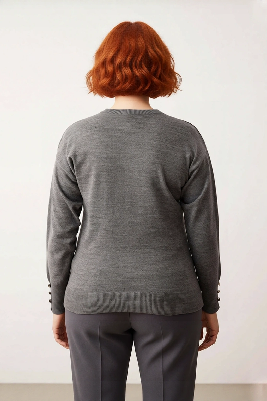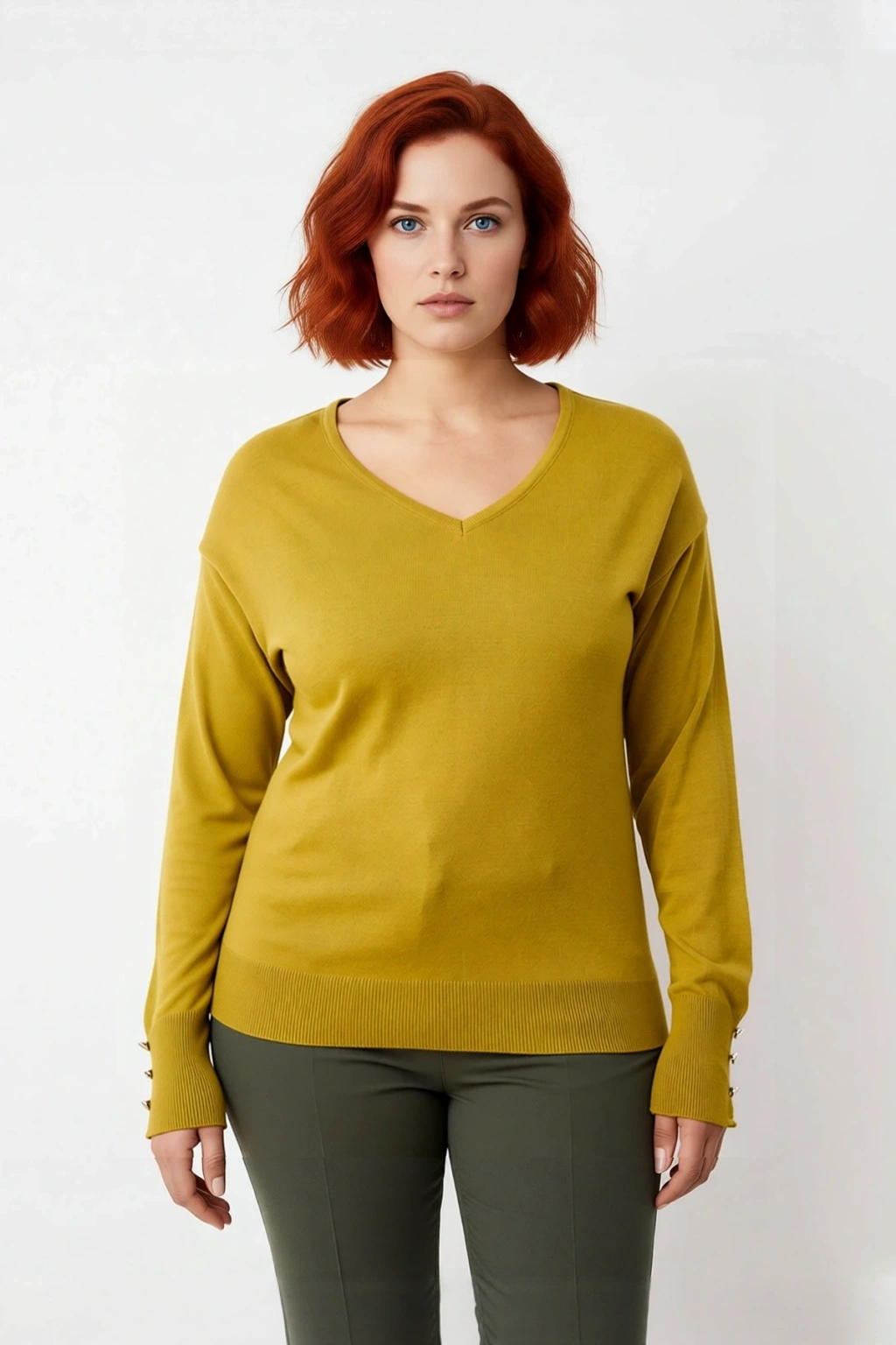 Ürünün V yaka tipi, klasik ve zamansız bir duruş sergilerken, standart kol yapısı gün boyu rahat bir kullanım sunar. Uzun kol boyu, serin havalarda ekstra koruma sağlarken, kol ağzındaki şık düğme detayları kazağa özgün ve modern bir hava katar. Tek plaka dokuma tipi, triko kumaşın hafifliğini ve nefes alabilirliğini ön plana çıkarır. Akrilik materyalin dayanıklı yapısı sayesinde uzun ömürlü bir kullanım vaat ederken, T41 yıkama talimatı sayesinde bakımı da oldukça pratiktir. Bu özellikler, kazağı hem estetik hem de fonksiyonel açıdan üstün kılar.