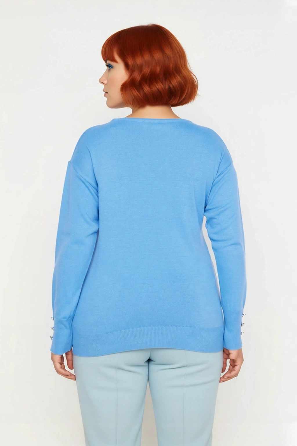 Ürün Özellikleri: Regular kalıp, %100 akrilik materyal, düz desen, V yaka, standart kol, triko kumaş, mavi renk.