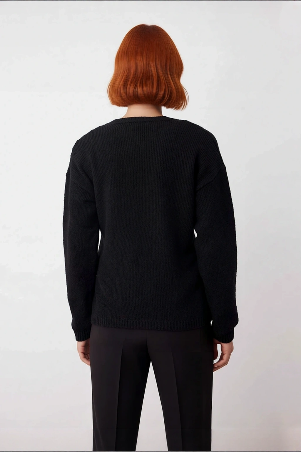 Bu Kadın V Yaka triko kazak, regular kalıbı ile vücuda nazikçe oturarak hem rahatlık hem de şık bir duruş sunar. %53 polyester ve %47 pamuktan oluşan materyal bileşeni sayesinde soğuk havalarda ideal sıcaklığı korurken, cilde yumuşak bir dokunuş hissi verir. Düz deseni ve zamansız siyah rengi, her gardırobun vazgeçilmezi olmaya adaydır. Cool & Comfort personasına hitap eden bu kazak, günlük şıklığınızı zahmetsizce tamamlar ve modern bir hava katar.
