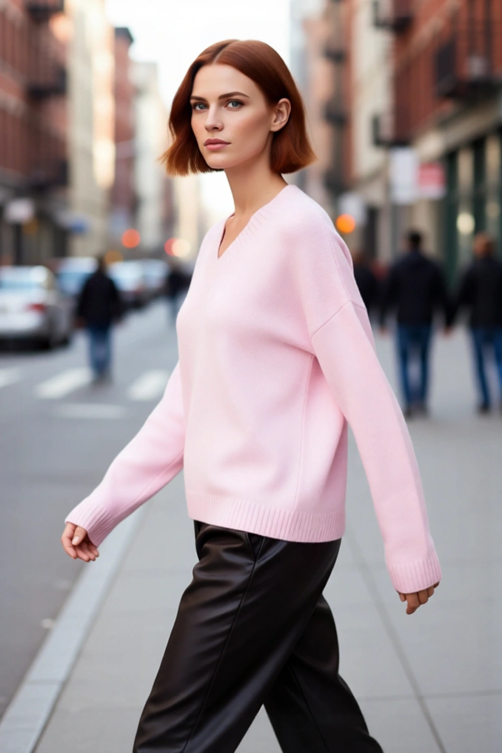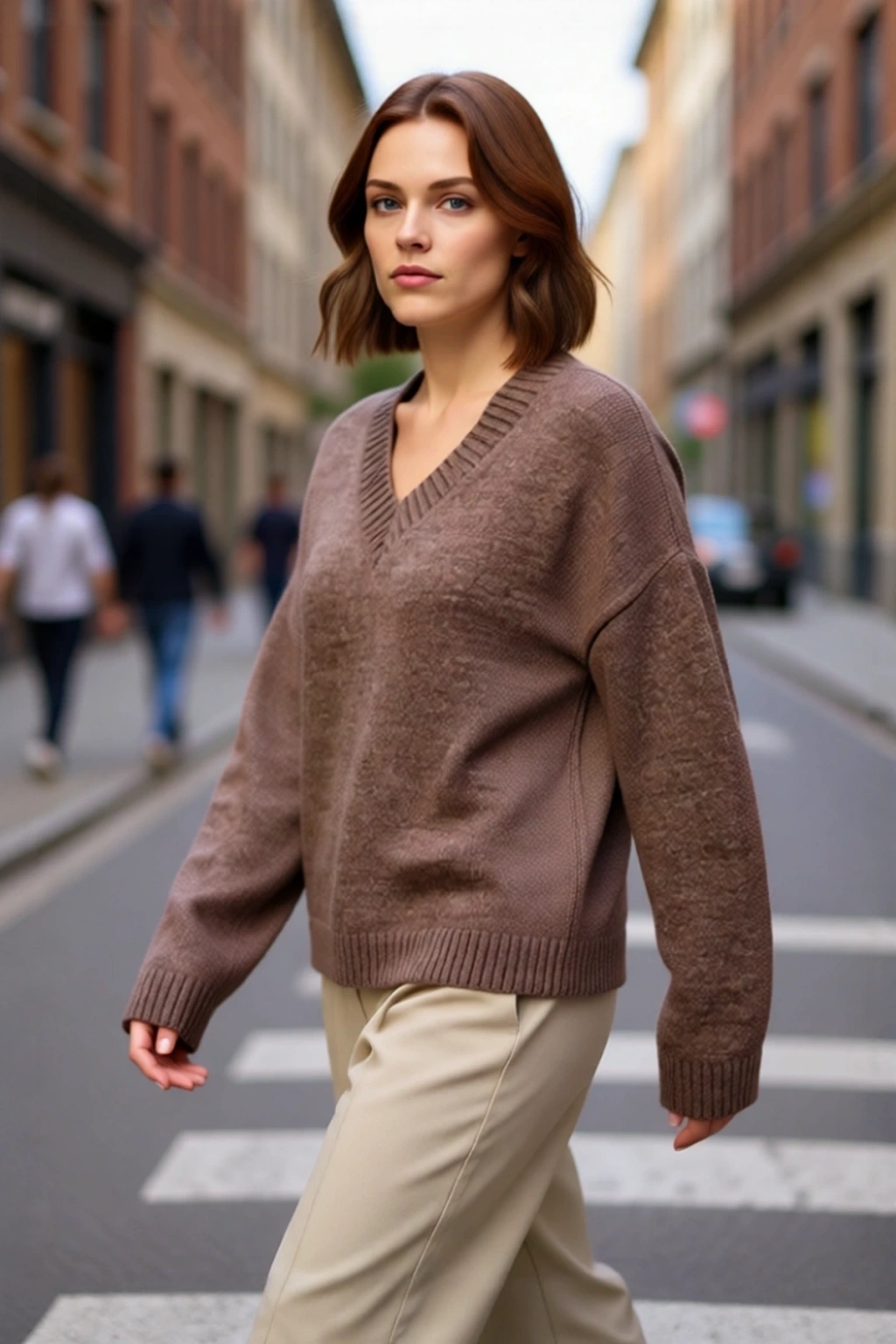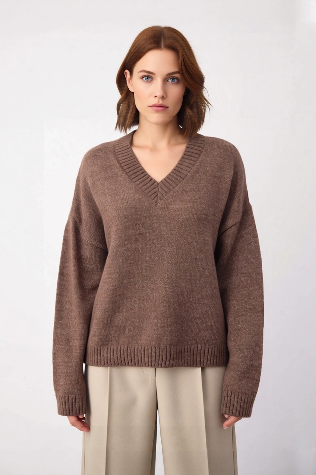 Şık V yaka detayı, boyun hattını zarifçe vurgularken, standart uzun kolları rahat ve kullanışlı bir yapı sunar. Orta kalınlıktaki triko kumaşı, terletmeden sıcak tutma özelliğiyle dört mevsim geçişlerinde dahi idealdir. Tek plaka dokuma tekniğiyle üretilen bu kazak, üstün dayanıklılığı sayesinde formunu uzun süre korur. Kolay bakım talimatları sayesinde pratik bir kullanım sunar, makinede yıkanabilir özelliğiyle zaman kazandırır.