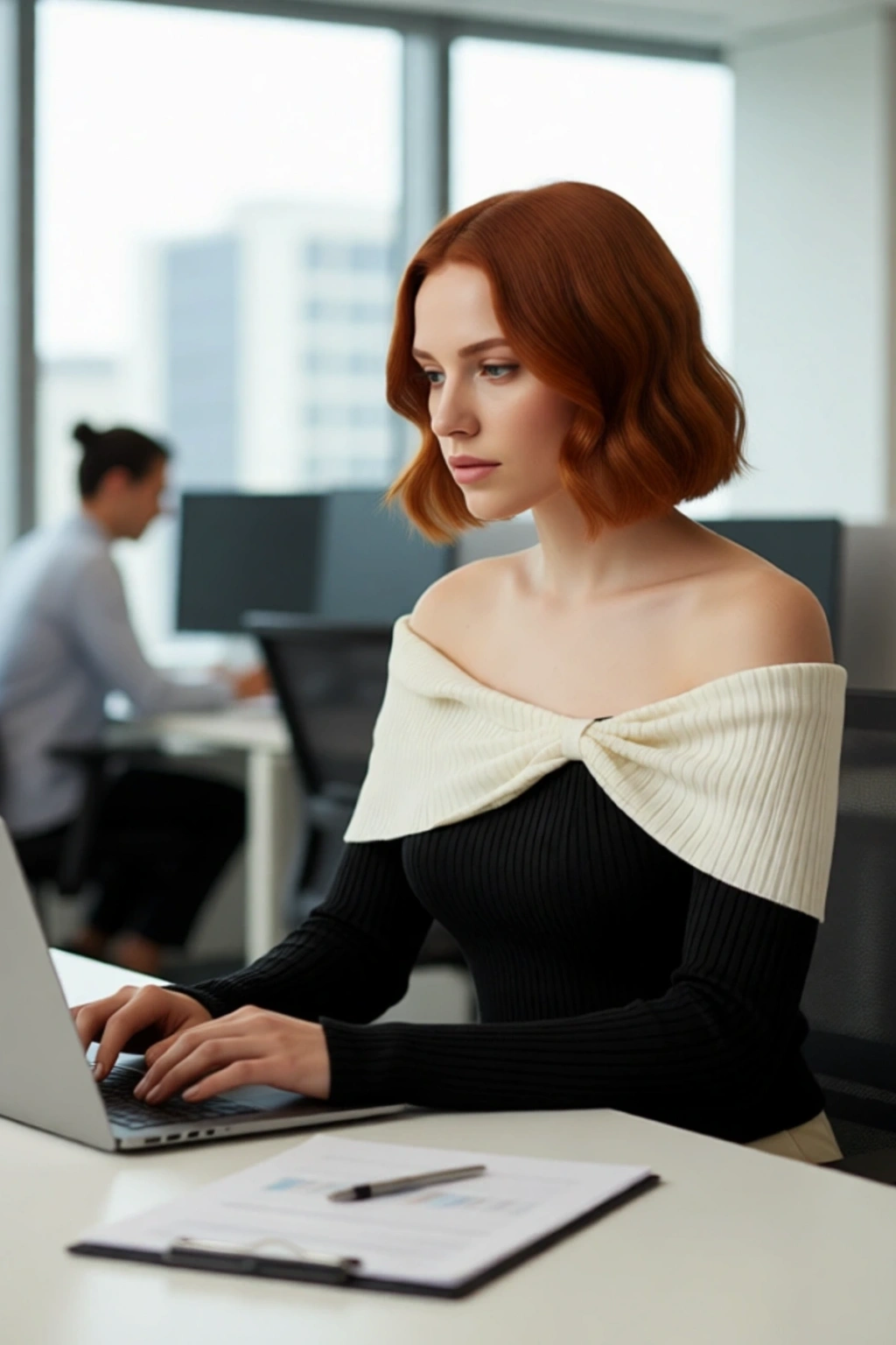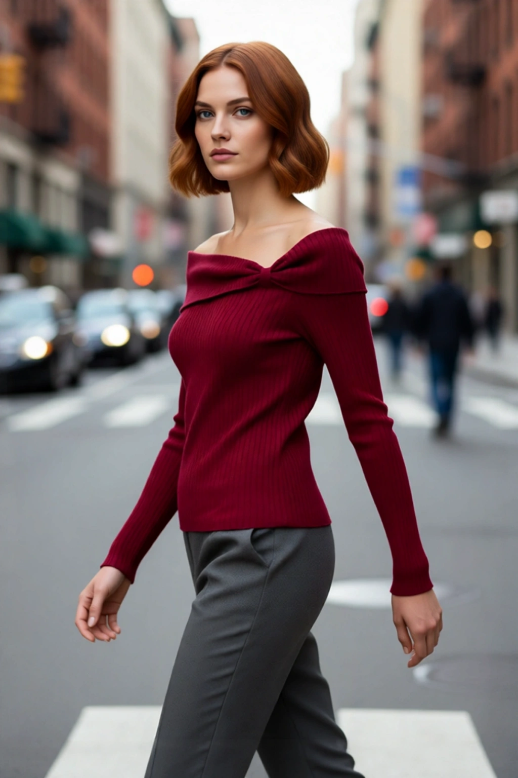 Bu bluzun özgün Carmen yaka kesimi, omuzları zarifçe açığa çıkararak sofistike ve feminen bir dokunuş sağlar; bu özelliğiyle özellikle akşam yemekleri, özel buluşmalar veya şık etkinlikler için mükemmel bir tercihtir. Standart uzun kolları, serin havalarda yeterli koruma sağlarken, triko kumaşının esnek ve hafif yapısı gün boyu hareket özgürlüğü ve üstün konfor sunar. Fitilli dokuma detayı, ürüne modern bir hava katarken, 100% akrilik bileşeni sayesinde renk dayanıklılığı ve kolay bakım avantajları sunar. T41 yıkama talimatları ile pratik bir kullanım sunar, formunu uzun süre korur.