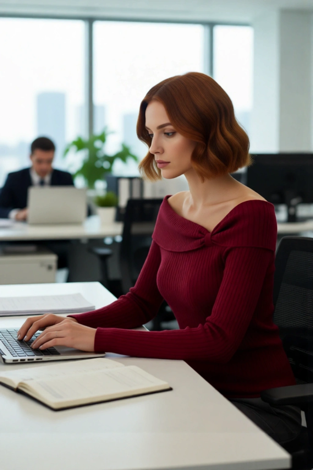 Ürün Özellikleri: Fitted kalıp, akrilik materyal, baskısız desen, carmen yaka, standart kol, triko kumaş, bordo renk.