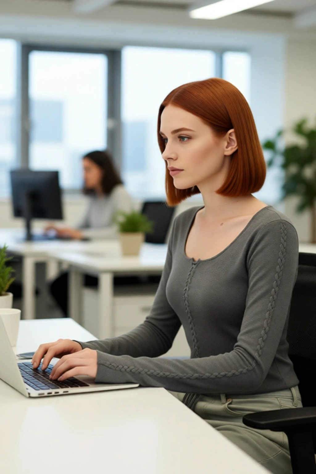 Ürün Özellikleri: Fitted kalıp, akrilik viskoz materyal, düz desen, yuvarlak yaka, standart kol, triko kumaş, antrasit renk.