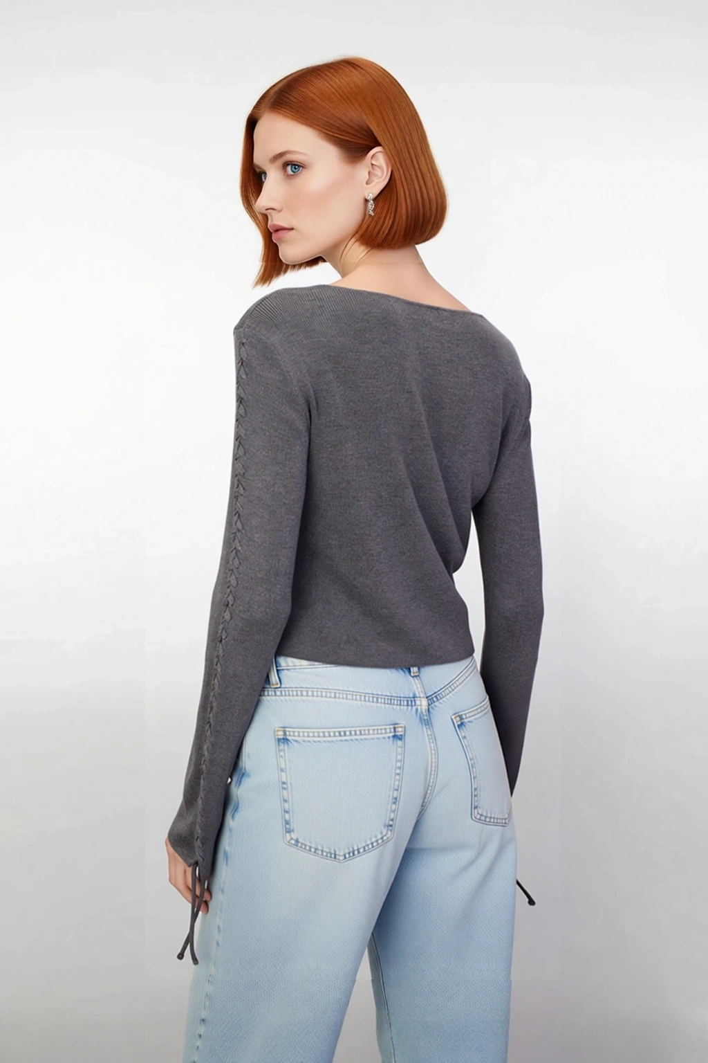 Kadınlar için tasarlanan bu antrasit renkli triko kazak, modern ve zarif bir görünüm sunar. Fitted kalıbı sayesinde vücut hatlarınıza nazikçe otururken, ön ve kol kısımlarındaki bağcık detayları ile sıradanlıktan uzak, özgün bir stil oluşturur. Orta kalınlıktaki triko kumaşı, 52% Akrilik ve 48% Viskoz materyal bileşimi ile soğuk havalarda sıcak tutarken, cildinize yumuşak ve hoş bir dokunuş sağlar. Düz deseni, bağcıkların estetik görünümünü ön plana çıkararak kış ve sonbahar kombinlerinize hareket katar.