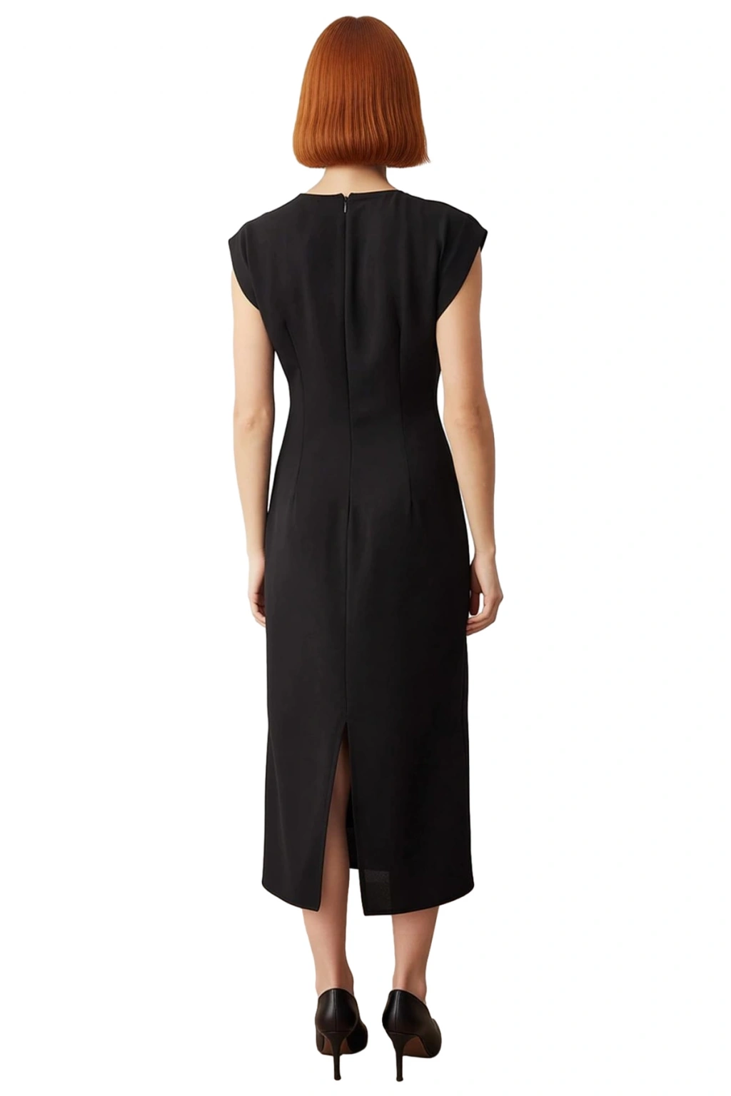 Bu midi boy elbise, özel davetler, iş toplantıları veya şık akşam yemekleri gibi gündüzden geceye uzanan tüm ortamlarda rahatlıkla tercih edilebilir. Shift kesimi sayesinde her vücut tipine uyum sağlar ve farklı aksesuarlarla kolayca kombinlenebilir. İlkbahar, yaz ve sonbahar mevsimlerinde tek başına, serin havalarda ise ince bir şal veya ceketle tamamlayarak şıklığınızı koruyabilirsiniz.