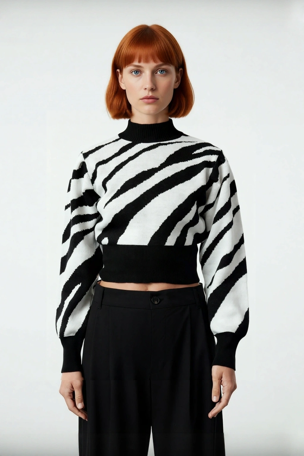Bu kadın zebra desenli dik yaka crop triko kazak, kış sezonunun soğuk ve kasvetli günlerine neşe katarken, stilinizden ödün vermeden sıcak kalmanızı sağlayacak modern bir tasarımdır. Regular kalıbı ile her vücut tipine uyum sağlayarak gün boyu rahat bir kullanım sunar. Yüksek kaliteli %100 akrilik materyali sayesinde yumuşacık bir dokunuş hissi verirken, sizi sıcacık tutma özelliğiyle öne çıkar. Canlı pembe tonlarındaki trend zebra deseni, enerjik ve göz alıcı bir stil yaratarak günlük kombinlerinize dinamik bir hava katar. Bu kazak, casual ortamlarda anında fark yaratacak iddialı bir seçimdir.