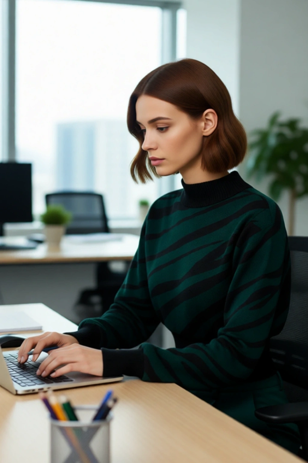 Zarif dik yaka tasarımı, boynunuzu soğuktan korurken aynı zamanda şık ve modern bir duruş sergiler. Uzun standart kolları, hareket özgürlüğünüzü kısıtlamadan gün boyu konforlu bir kullanım sunar. Orta kalınlıktaki triko kumaşı, nefes alabilen yapısıyla cildinize dost bir dokunuş sağlarken, çift plaka dokuma tekniği sayesinde ürünün dayanıklılığı artırılmıştır. Cepsiz minimalist tasarımı, akıcı ve zarif bir siluet oluşturur. Crop boyu, modern ve genç bir görünüm kazandırarak özellikle yüksek bel alt giyimlerle mükemmel bir uyum yakalar. Makinede yıkanabilir özelliği ile bakımı son derece kolaydır, bu da yoğun tempolu günlerinizde pratiklik sağlar.
