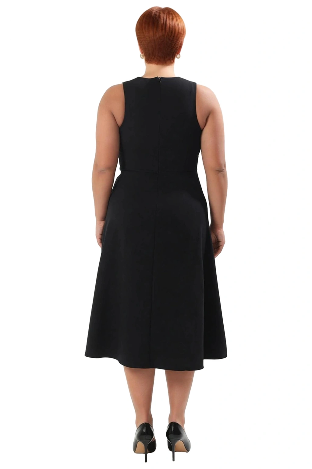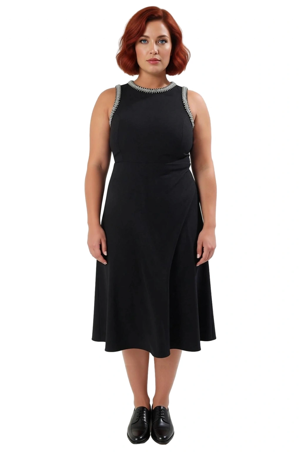 Ürün Özellikleri: A-line kalıp, polyester elastan materyal, düz desen, bisiklet yaka, kolsuz, dokuma kumaş, siyah renk, büyük beden koleksiyonu.