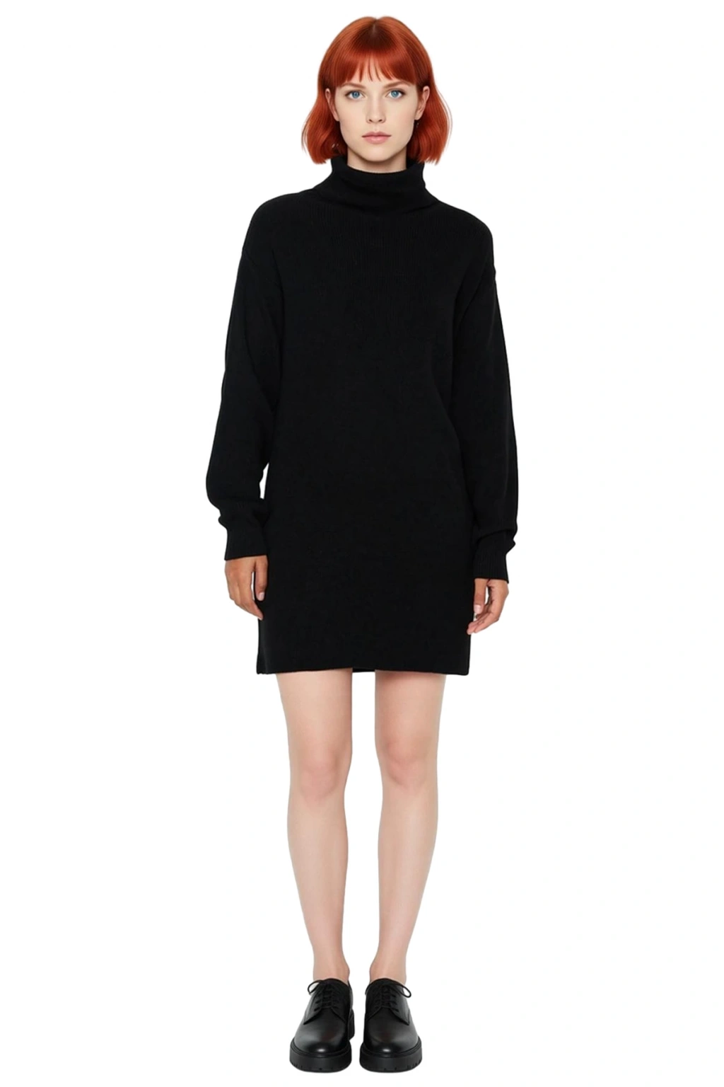 Bu kazak elbise, casual ve günlük kullanım için özel olarak tasarlanmıştır. Shift kalıbı, farklı vücut tiplerine kolayca uyum sağlar ve her kadının gardırobunda olması gereken temel parçalardan biridir. Kış aylarında kalın taytlar, botlar ve şık aksesuarlarla tamamlayarak göz alıcı kombinler oluşturabilirsiniz. Soğuk havalarda stilinizden ödün vermeden sıcak ve rahat kalmak isteyen kadınlar için mükemmel bir seçenektir.