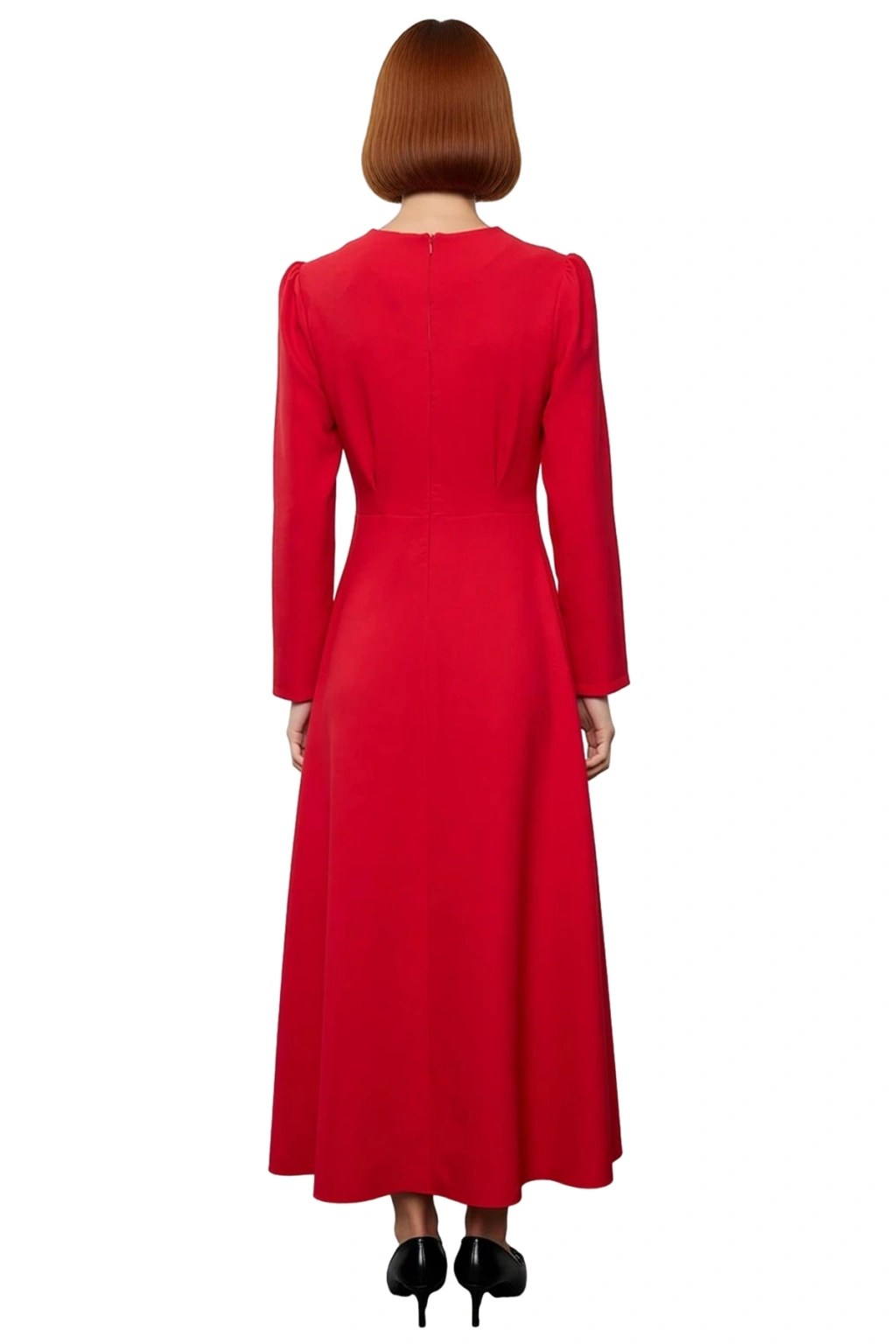 Kadınlar için tasarlanan bu düz desen kırmızı dokuma maxi elbise, modern ve asil duruşuyla dikkat çekiyor. Skater kalıbı sayesinde belden hafifçe oturan ve etek kısmında zarifçe genişleyen kesimi, her bedende feminen bir siluet oluşturur. Yüksek oranlı polyester ve elastan karışımı materyali, dokuma kumaşın dayanıklılığı ve esnekliği ile birleşerek gün boyu üstün konfor sağlar. Göz alıcı kırmızı rengi ve desensiz tasarımı, minimal şıklığı sevenlerin tercihi olurken, uzun kollu yapısı mevsim geçişlerinde ideal bir seçenektir. Bu elbise, Cool & Comfort personasına uygun olarak hem rahat hem de şık hissetmenizi garantiler.