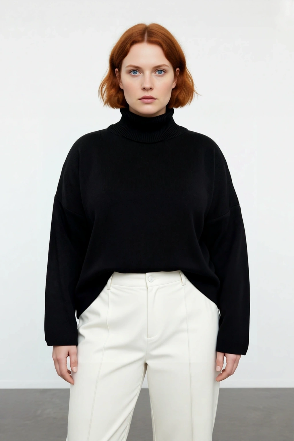 Shift siluetine sahip bu geniş kalıp kazak, her vücut tipine uyum sağlayarak gardırobunuzun kurtarıcı parçalarından biri olacak. Kış sezonunda taytlar, pantolonlar veya eteklerle kombinleyerek hem sıcak kalabilir hem de şık bir görünüm elde edebilirsiniz. Günlük şehir hayatından hafta sonu kaçamaklarına kadar birçok farklı ortamda rahatlıkla tercih edilebilir, stilinize modern bir dokunuş katar.