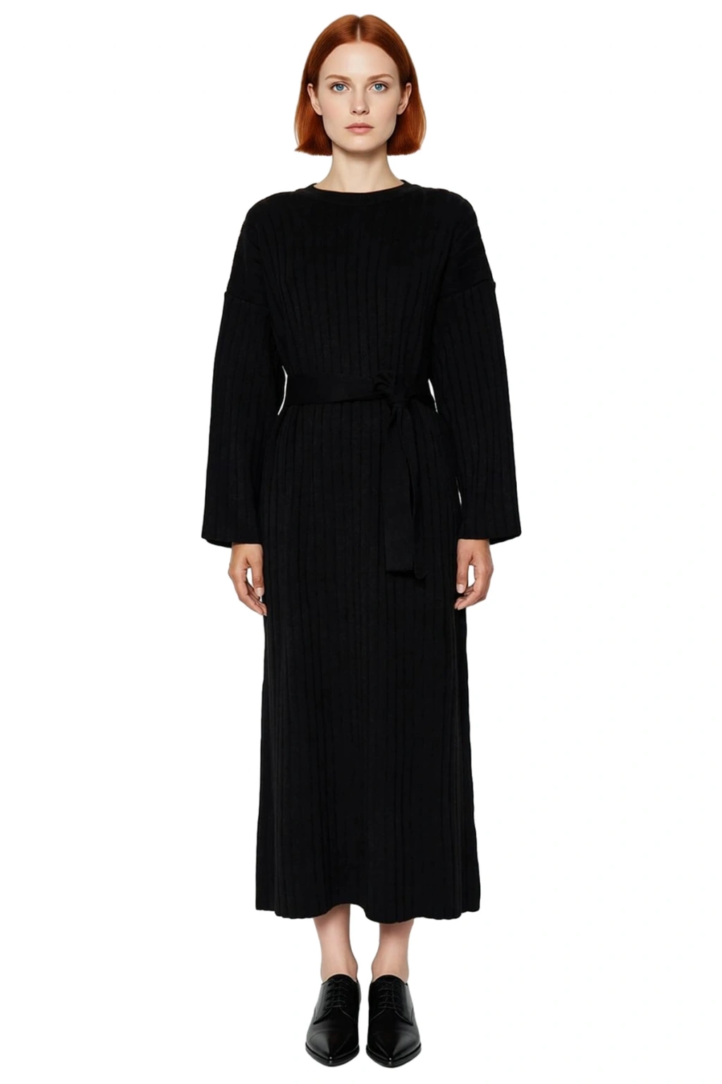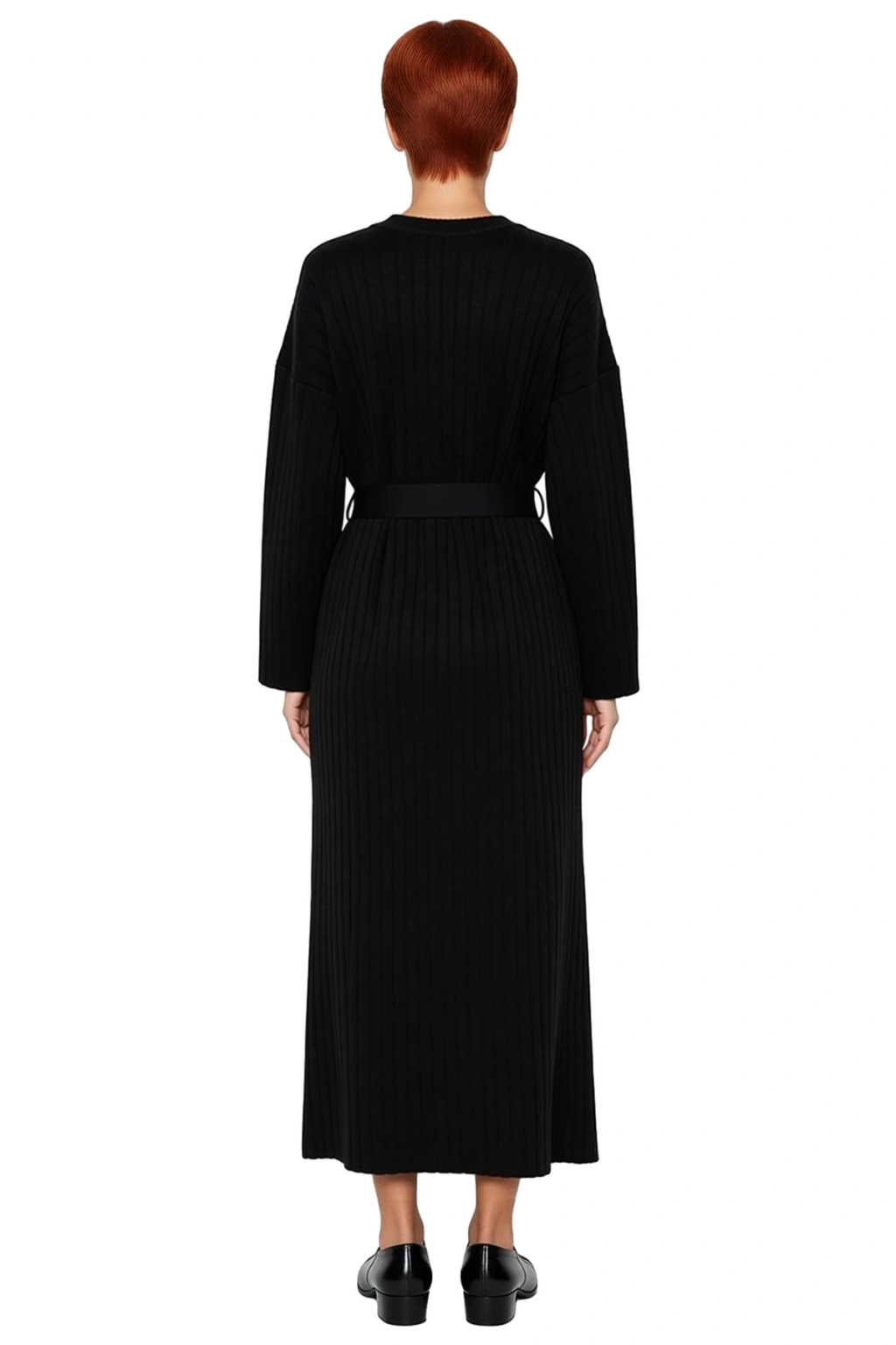 Bisiklet yaka kesimi klasik bir zarafet sunarken, düşük kol ve uzun kol boyu ile rahat bir kullanım deneyimi sunar. Ribana/kaşkorse dokuma tipi, elbiseye belirgin ve şık bir doku katarken, aynı zamanda esnekliğini ve dayanıklılığını artırır. Astarsız olmasına rağmen kalın triko kumaşı sayesinde kış aylarında mükemmel bir ısı yalıtımı sağlar. T41 yıkama talimatına uygun şekilde makinede yıkanabilir olması, pratik bir bakım rutini sunar ve ürünün ilk günkü kalitesini uzun süre korumasına yardımcı olur.