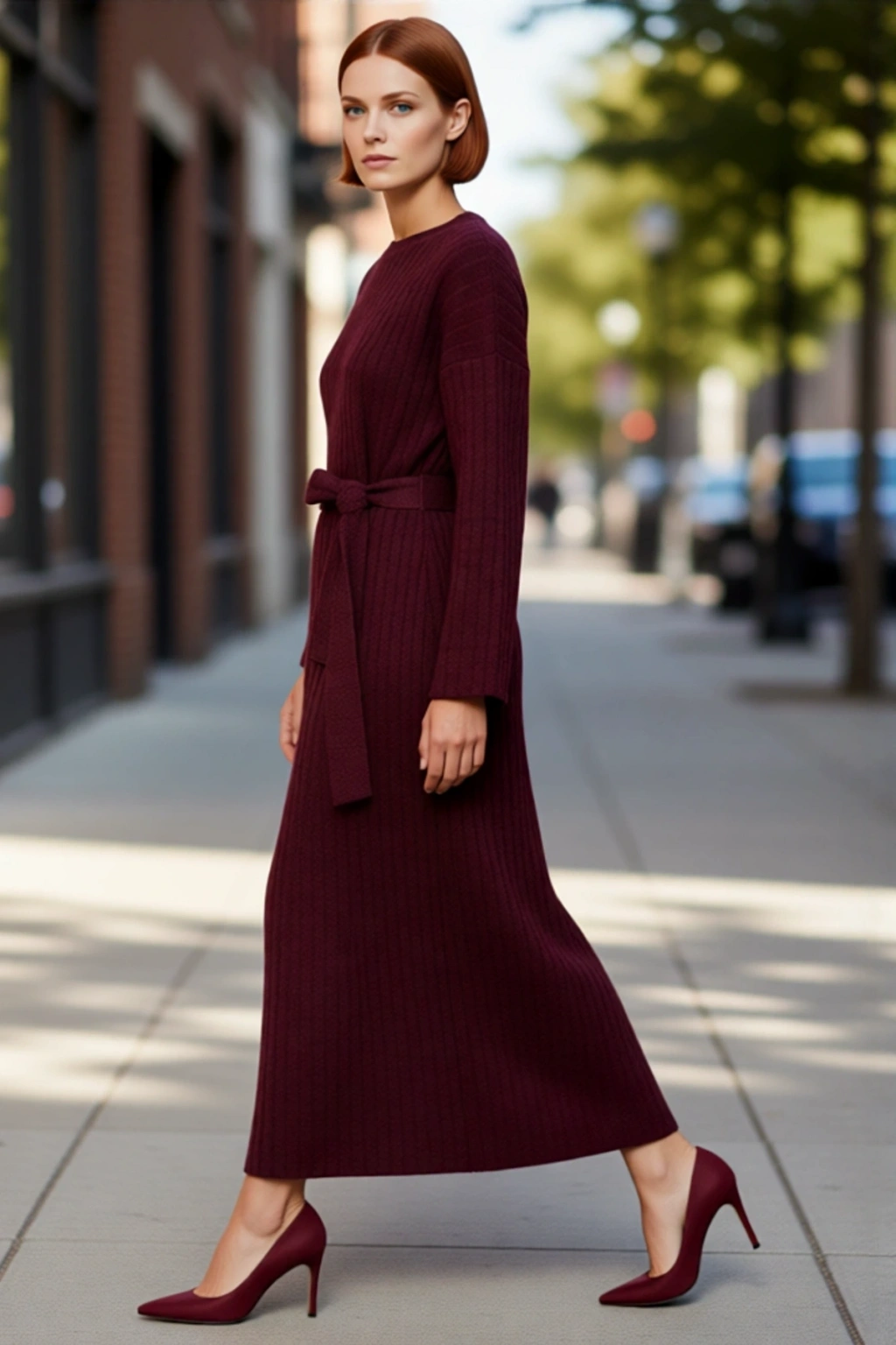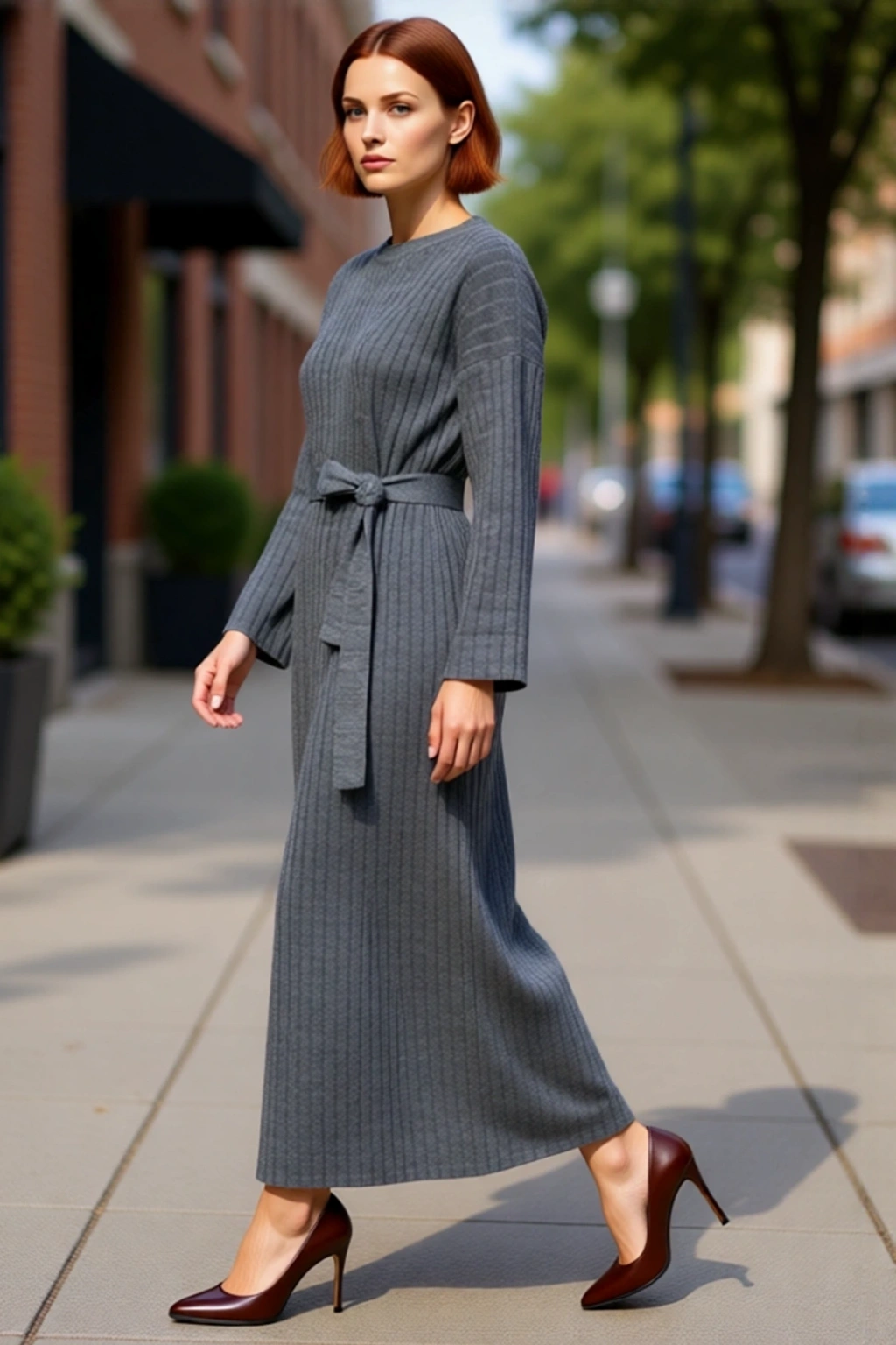 Maxi boyu sayesinde modern ve zarif bir görünüm sunan bu elbise, her vücut tipine uyum sağlayan A-line kesimiyle rahatlık sunar. Kışlık botlar veya şık çizmelerle kombinleyerek göz alıcı bir stil oluşturabilir, soğuk havalarda dış giyim parçalarıyla kolayca tamamlayabilirsiniz. Günlük yaşamda, ofiste veya özel buluşmalarda konforlu şıklığınızı sergileyin.