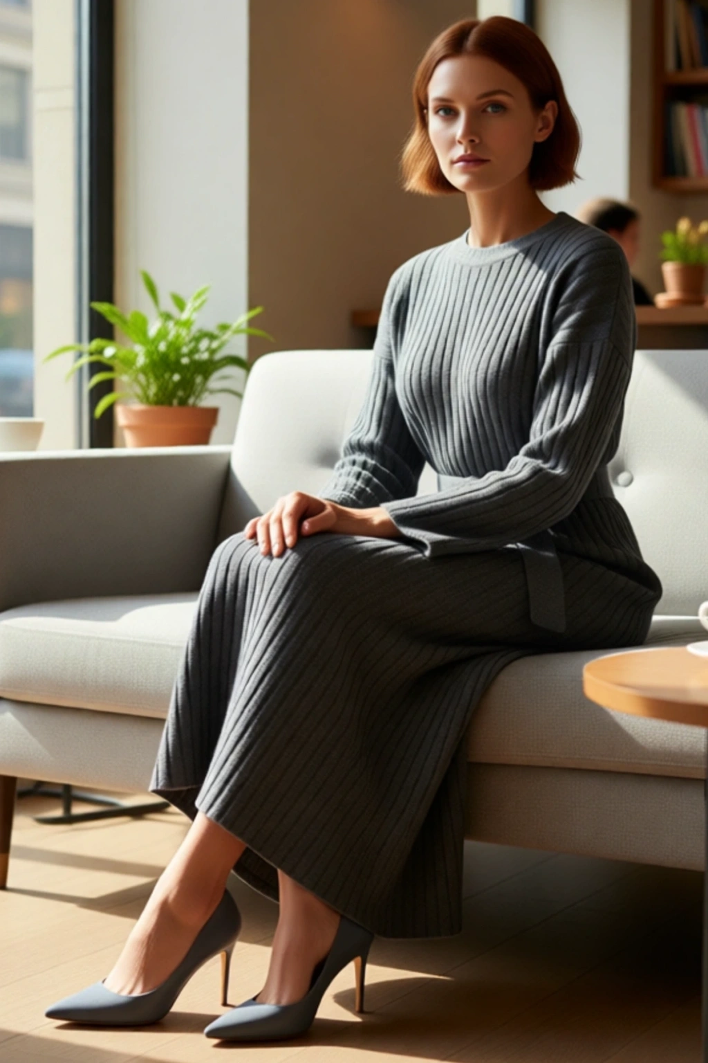 Bu Kadın Triko Ribana Dokulu Maxi Elbise, kış sezonunun soğuk günlerinde hem şıklığı hem de rahatlığı bir arada sunar. A-line kalıbı sayesinde vücuda nazikçe oturan ve hareket özgürlüğü sağlayan bu tasarım, %100 akrilik materyali ile gün boyu sıcacık ve yumuşacık bir his verir. Düz deseni ve antrasit gri rengiyle zamansız bir stil oluştururken, kuşak detayı belinizi zarifçe vurgulayarak estetik bir dokunuş katar. Bu elbise, casual/günlük kullanım için ideal olup, konforlu yapısıyla favori parçalarınızdan biri olacak.