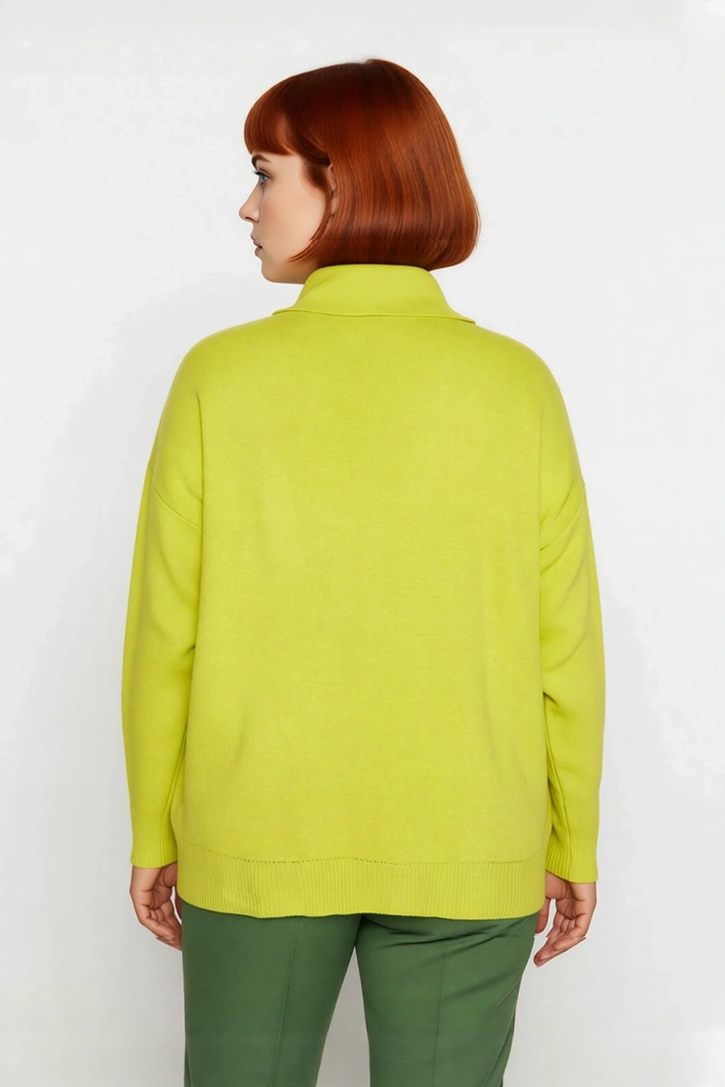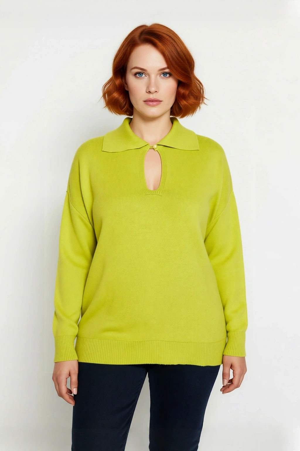 Ürün Özellikleri: Relaxed kalıp, akrilik materyal, düz desen, polo yaka, standart kol, triko kumaş, yeşil renk.