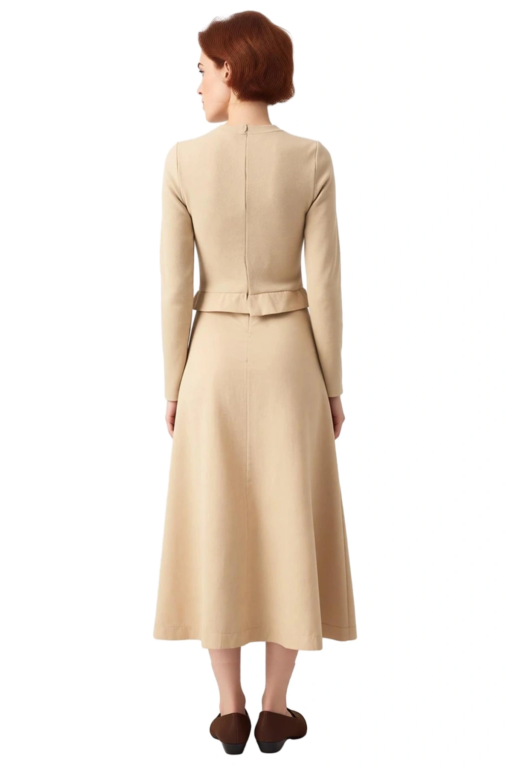 Ürün Özellikleri: Vücuda oturan kalıp, örme materyal, düz desen, bisiklet yaka, standart kol, ribana kaşkorse kumaş, camel renk, astarsız tasarım.