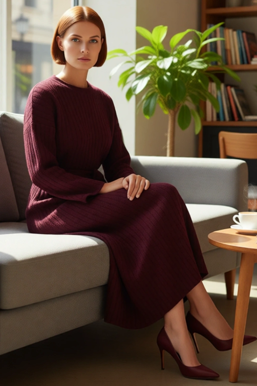 Bisiklet yaka tasarımı zamansız bir klasik dokunuş katarken, düşük kol kesimi ve uzun kol boyu hareket özgürlüğünüzü kısıtlamaz. Ribana/kaşkorse dokuma tipi elbiseye benzersiz bir doku kazandırırken, aynı zamanda dayanıklılığını ve formunu korumasına yardımcı olur. Astarsız olmasına rağmen kalın triko kumaşı kış aylarında yeterli sıcaklığı sağlar ve nefes alabilir yapısıyla konforu artırır. T41 yıkama talimatına uygun makinede yıkanabilir özelliği, pratik kullanım ve kolay bakım sunar.
