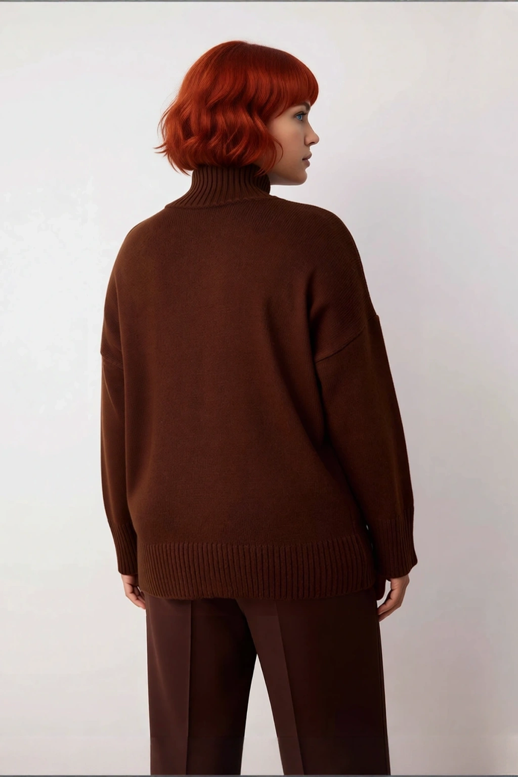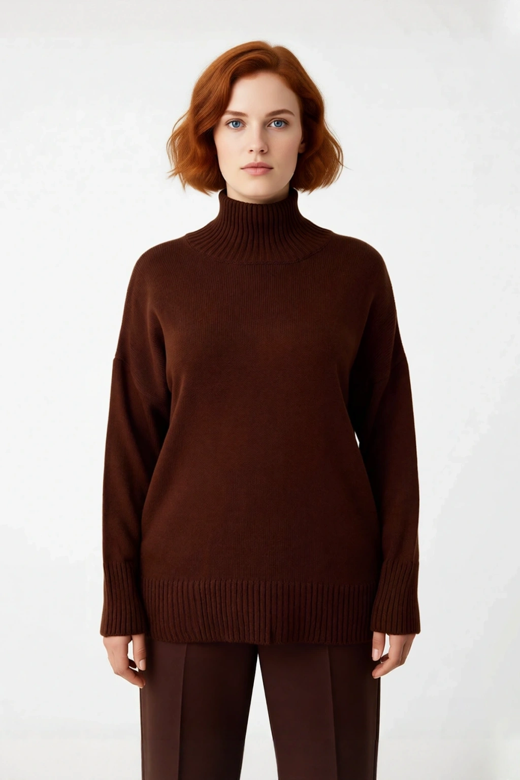 Bu kadın triko kazak, relaxed kalıbı ile gün boyu özgür ve rahat bir giyim deneyimi sunarak hareket özgürlüğünüzü kısıtlamaz. Yüksek kaliteli %100 akrilik materyalden üretilmiş olması sayesinde, soğuk kış günlerinde bile üstün sıcaklık ve yumuşacık bir dokunuş vaat eder, cildinize narin bir his bırakır. Düz deseni modern ve sade bir şıklık yaratırken, haki rengi doğal tonların zarafetini gardırobunuza taşıyarak kolay kombin imkanı sunar. Basic silueti ile her stile kolayca uyum sağlar ve uzun boyu sayesinde soğuktan ekstra koruma sunar. Orta kalınlıktaki yapısı ile mevsim geçişlerinde ve kış aylarında ideal bir parçadır.